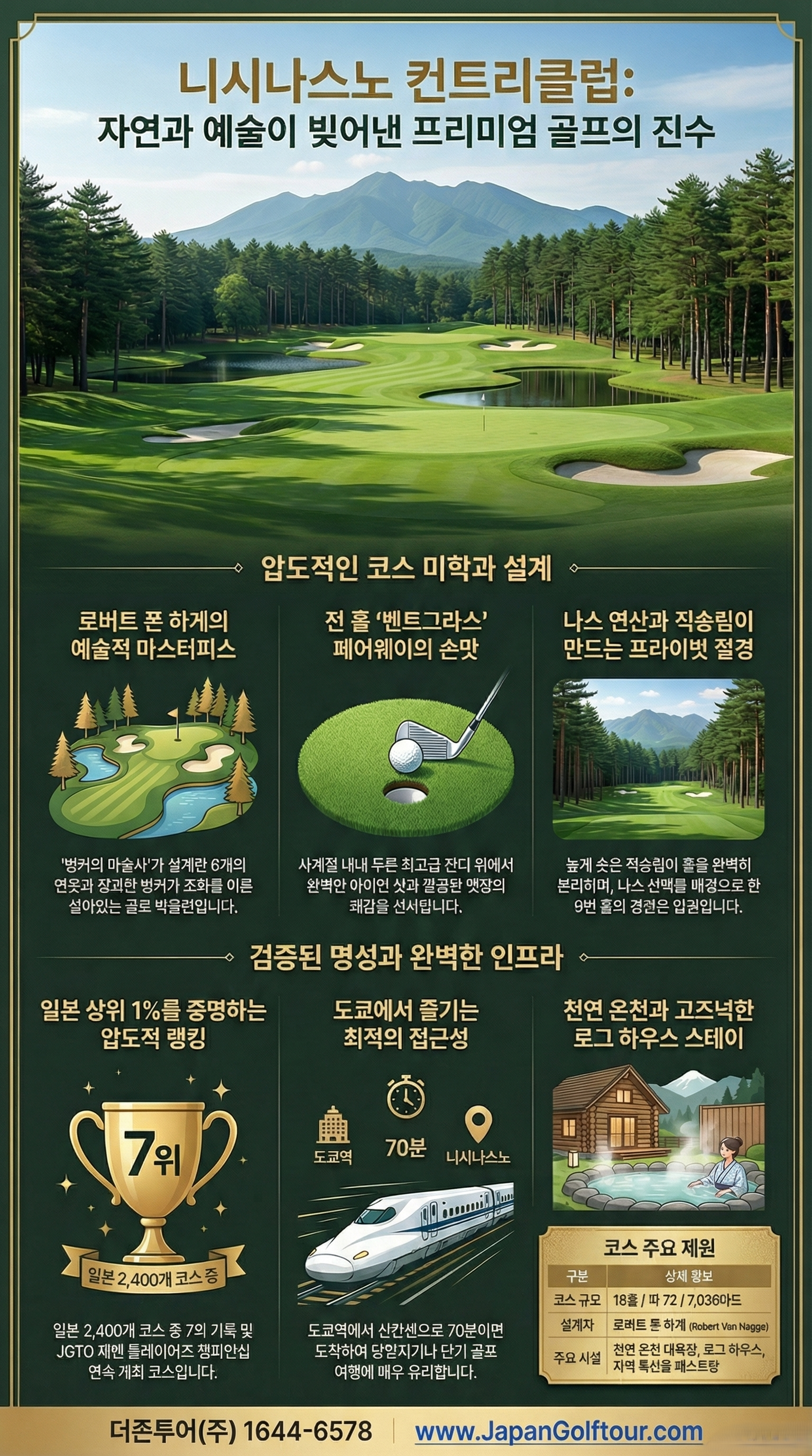 🔹 니시나스노 CC는 일본 내에서도 코스 관리 상태와 난이도가 최상위권으로 인정받아 프로 대회가 자주 열리는 곳이다.