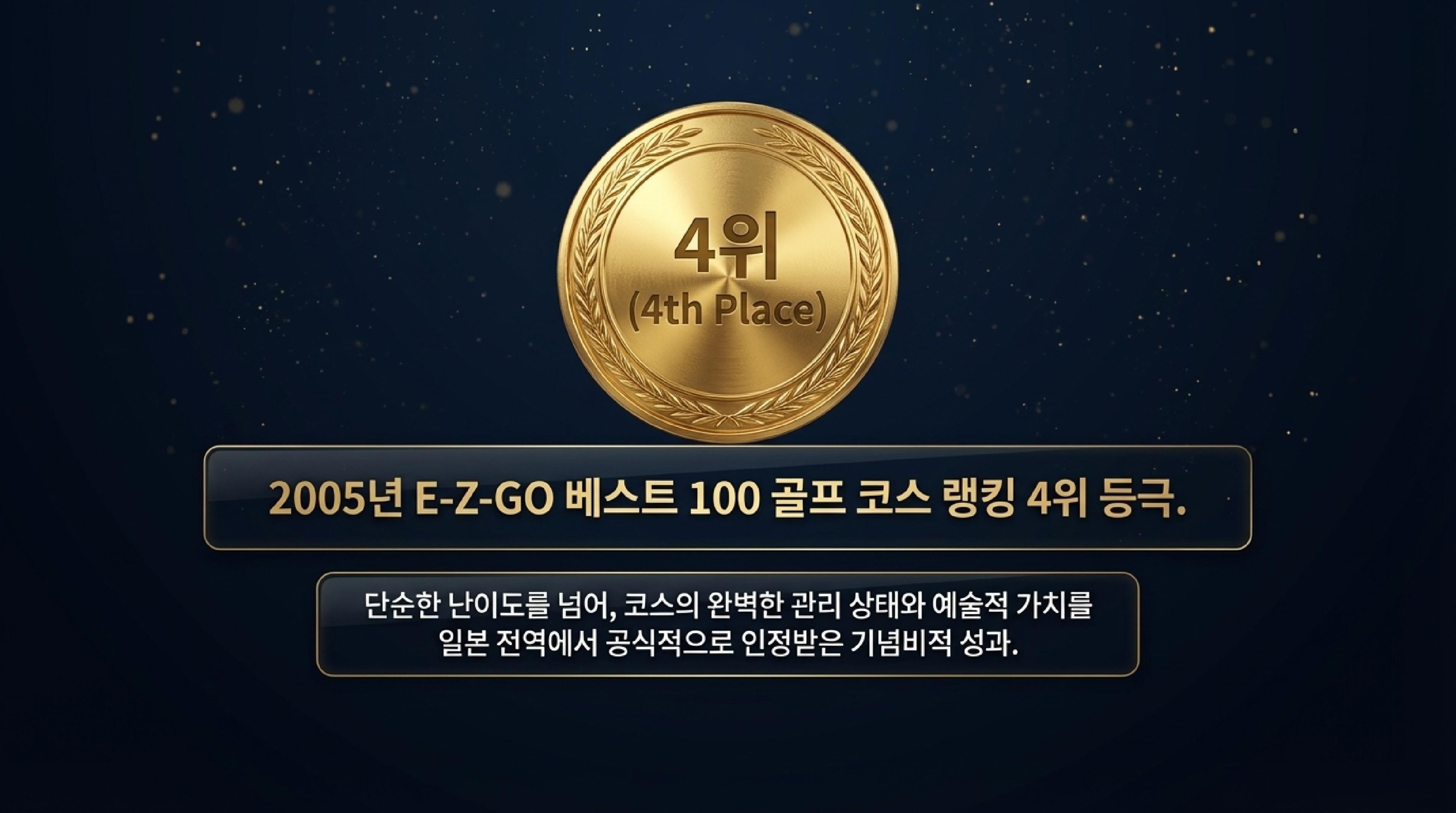 🔹 2005 | E-Z-GO 베스트 100 | 일본 내 베스트 코스 4위 랭크 | 프리미엄 가치의 대외적 공인