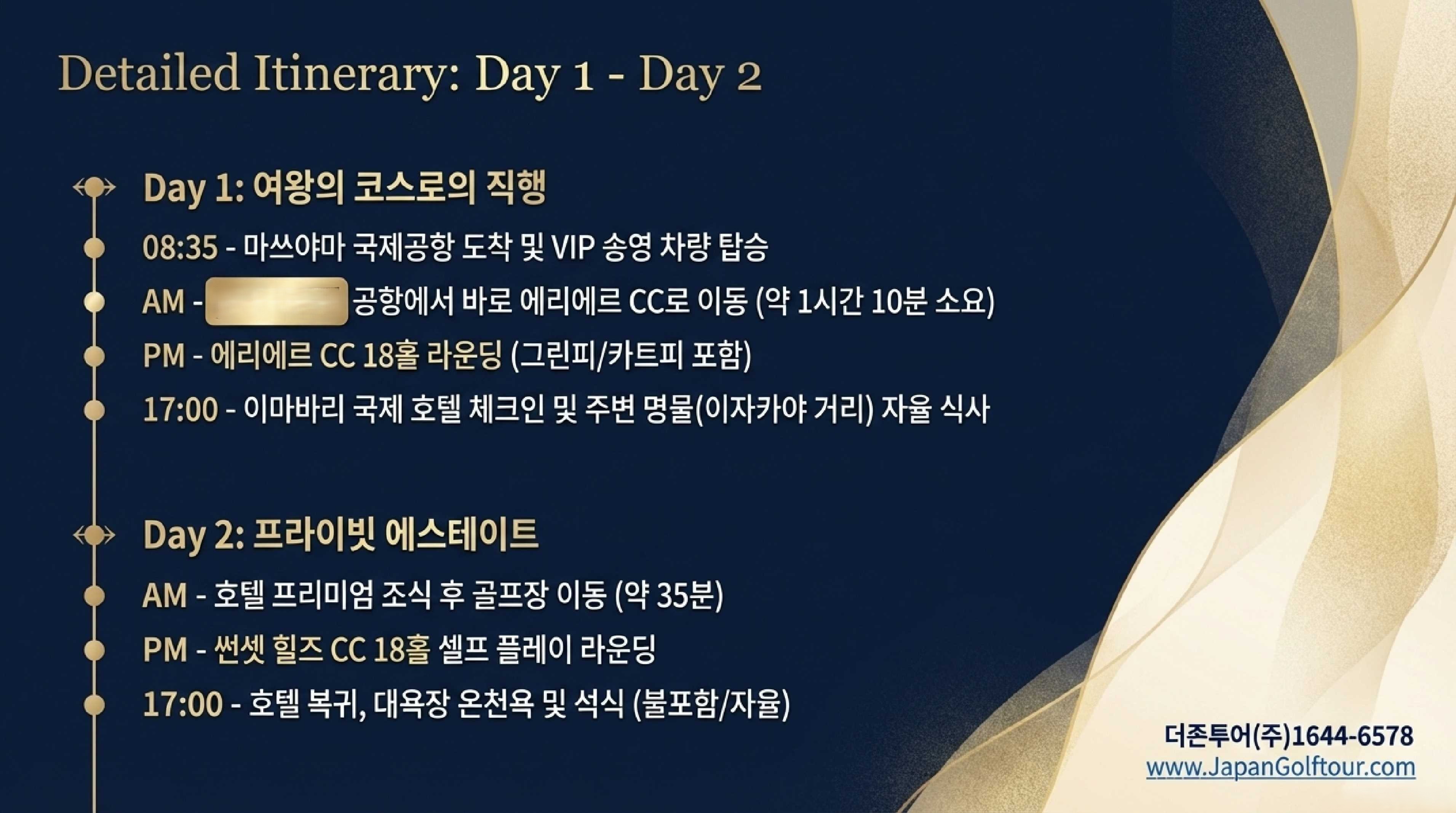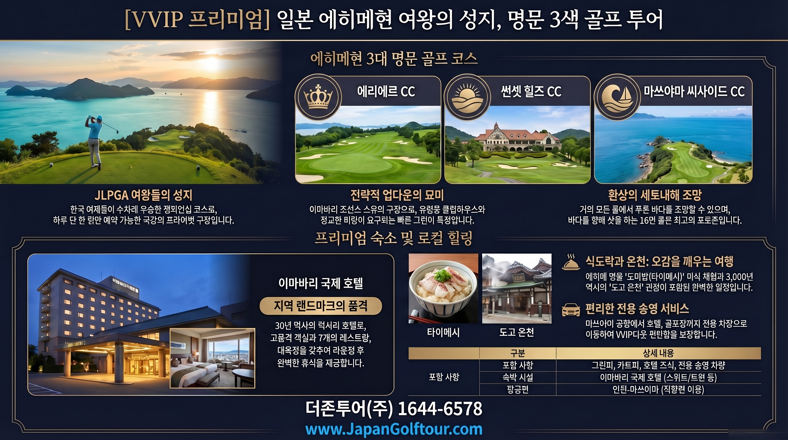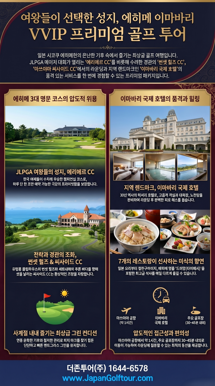 에히메 골프 여행 문의 및 예약 상담은 전문 여행사를 통해 진행하시길 권장합니다.