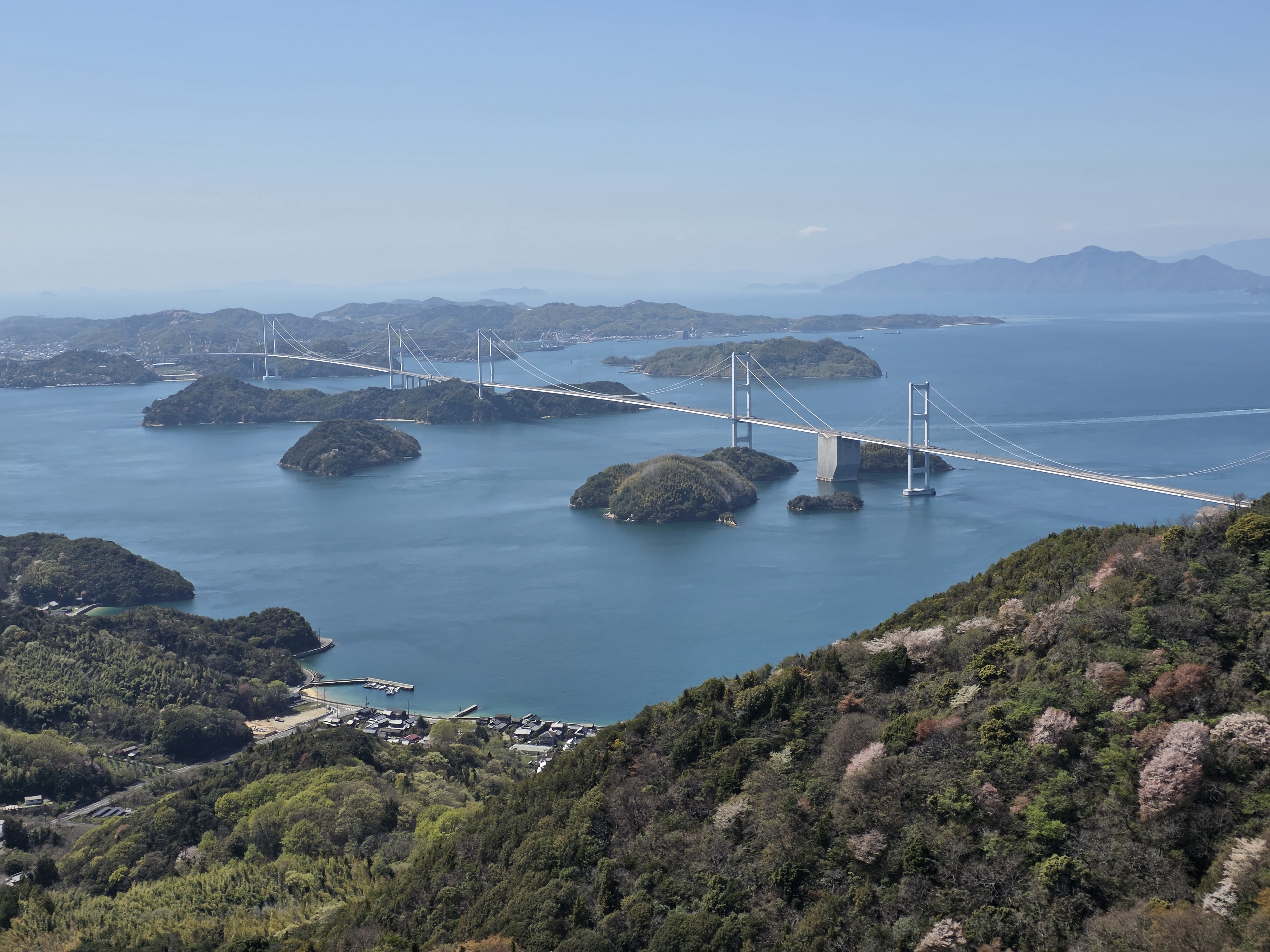 세토나이카이는 혼슈·시코쿠·규슈 사이에 자리한 내해로, 파고가 낮고 섬이 많아 잔잔하다. 겨울에는 특히 차갑고 선명한 에메랄드빛을 낸다. 이마바리는 시마나미 해도의 시작점으로, 다리 여섯 개가 연결된 자전거 도로를 따라 히로시마 오노미치까지 이어진다.