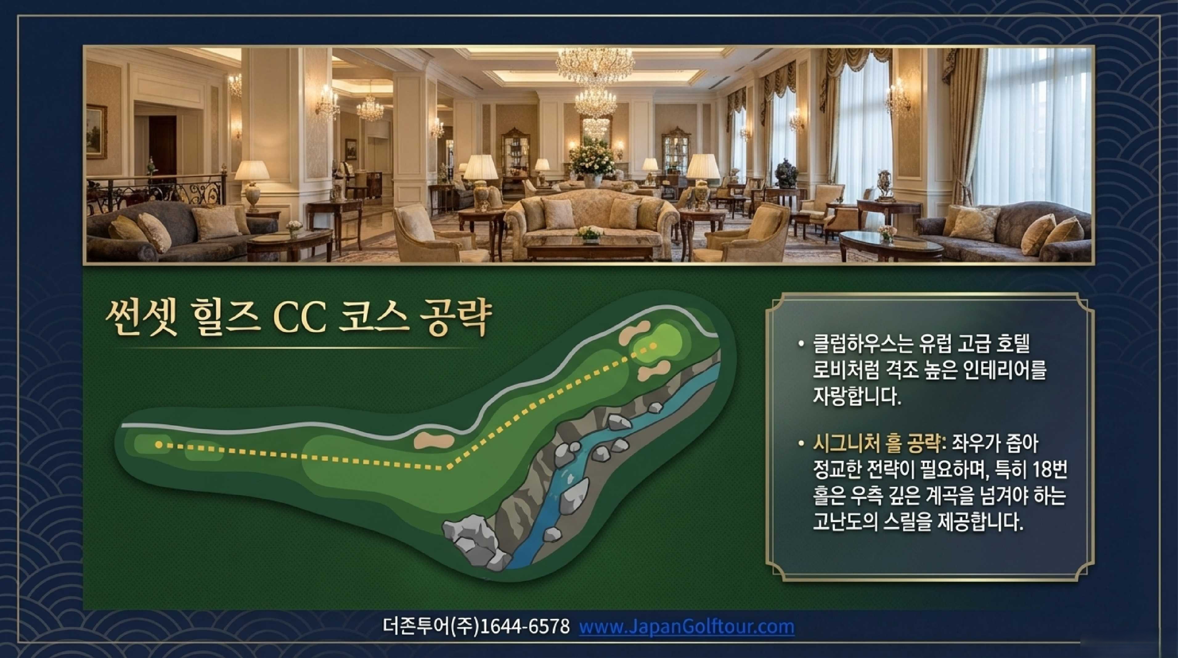 <코스 구성 세토내해 + 타카나와 / 핸디캡 1번 18번 홀 (Par 4) / 특징 : 빠른 그린, 넓은 페어웨이>