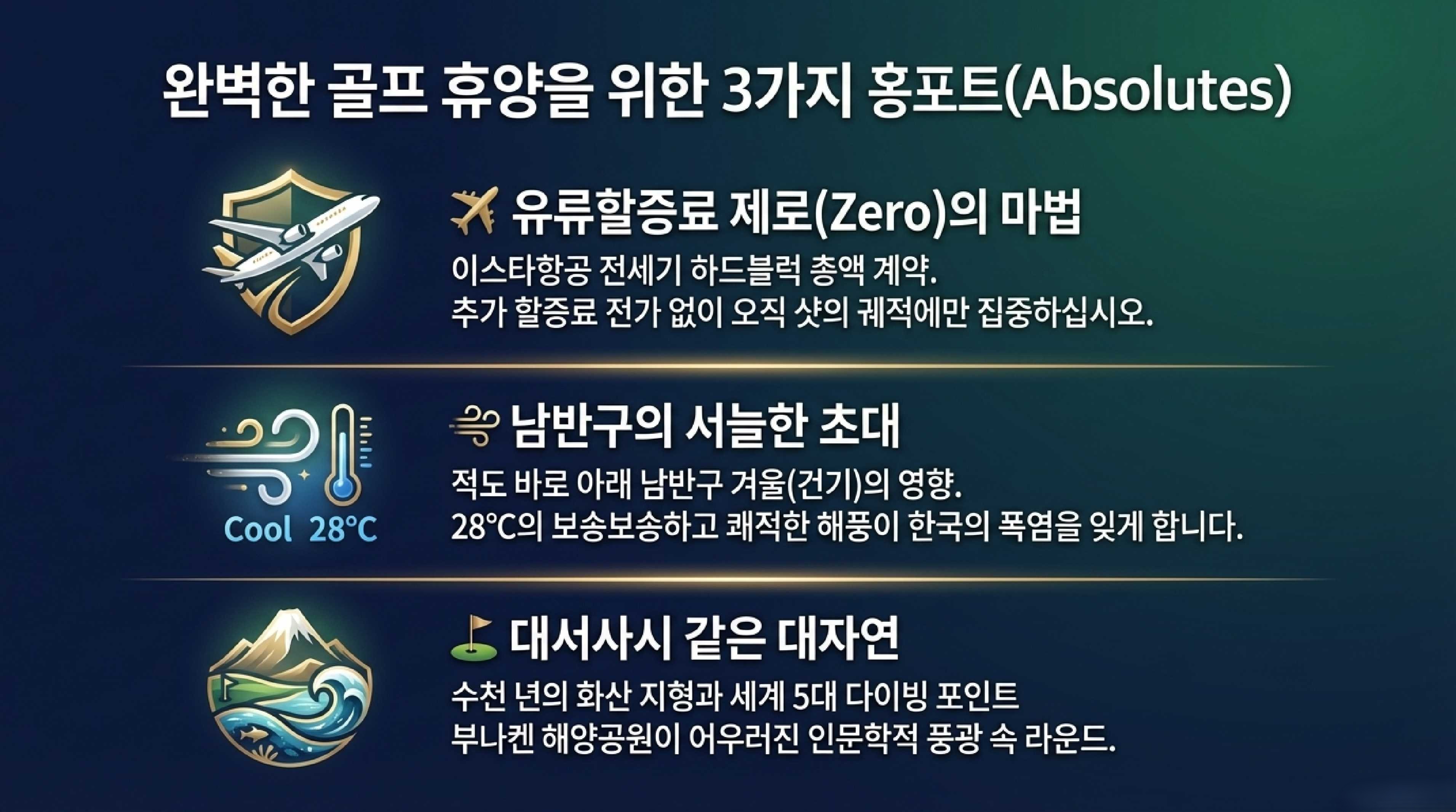 < 유류할증료 0원과 시원한 남반구의 여름골프 낙원>