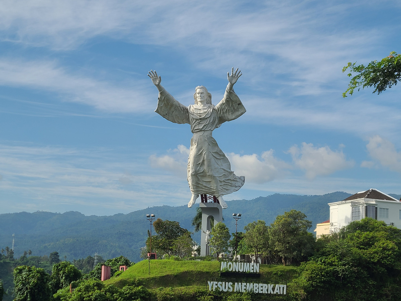 마나도의 랜드마크: 하늘을 향해 팔 벌린 '예수 축복상'