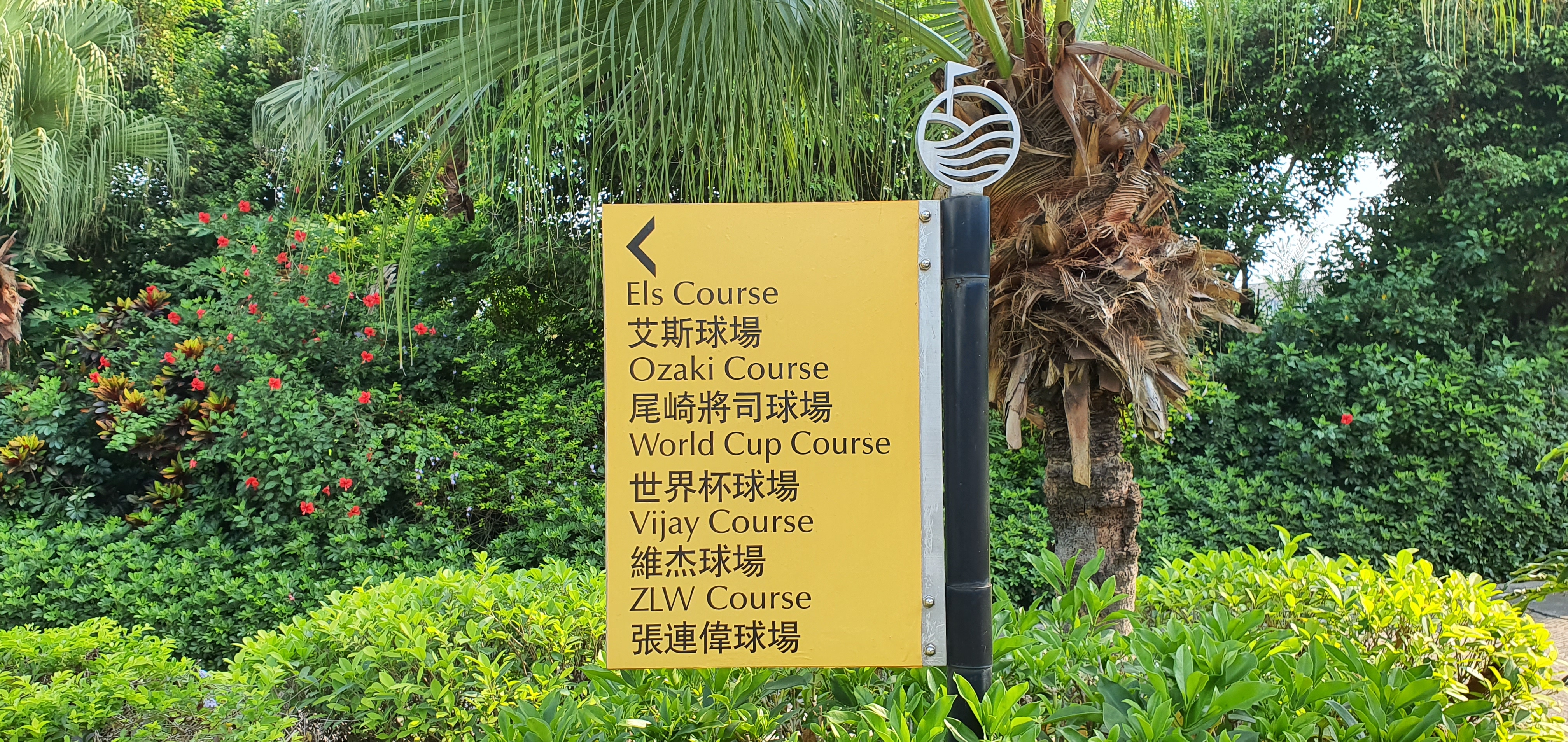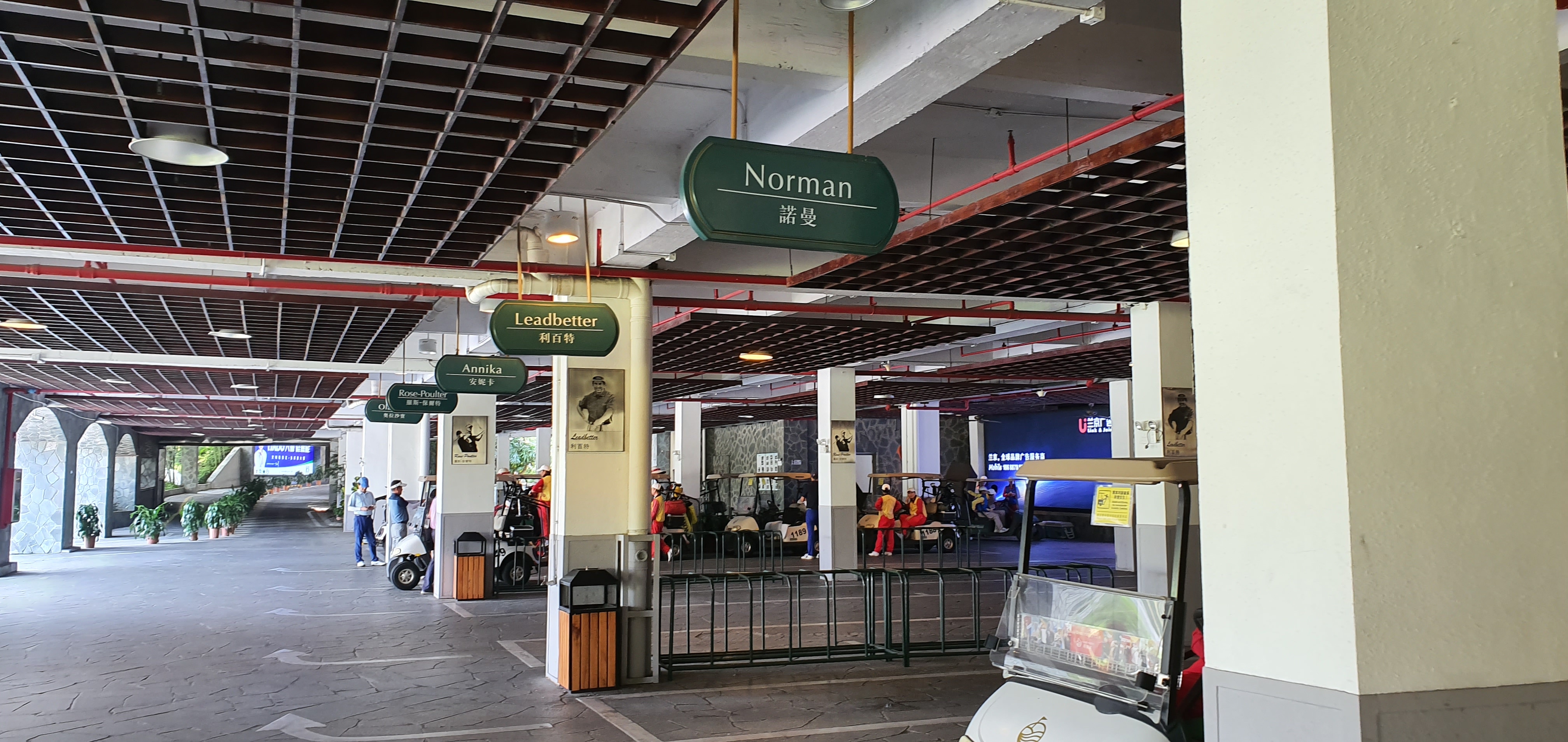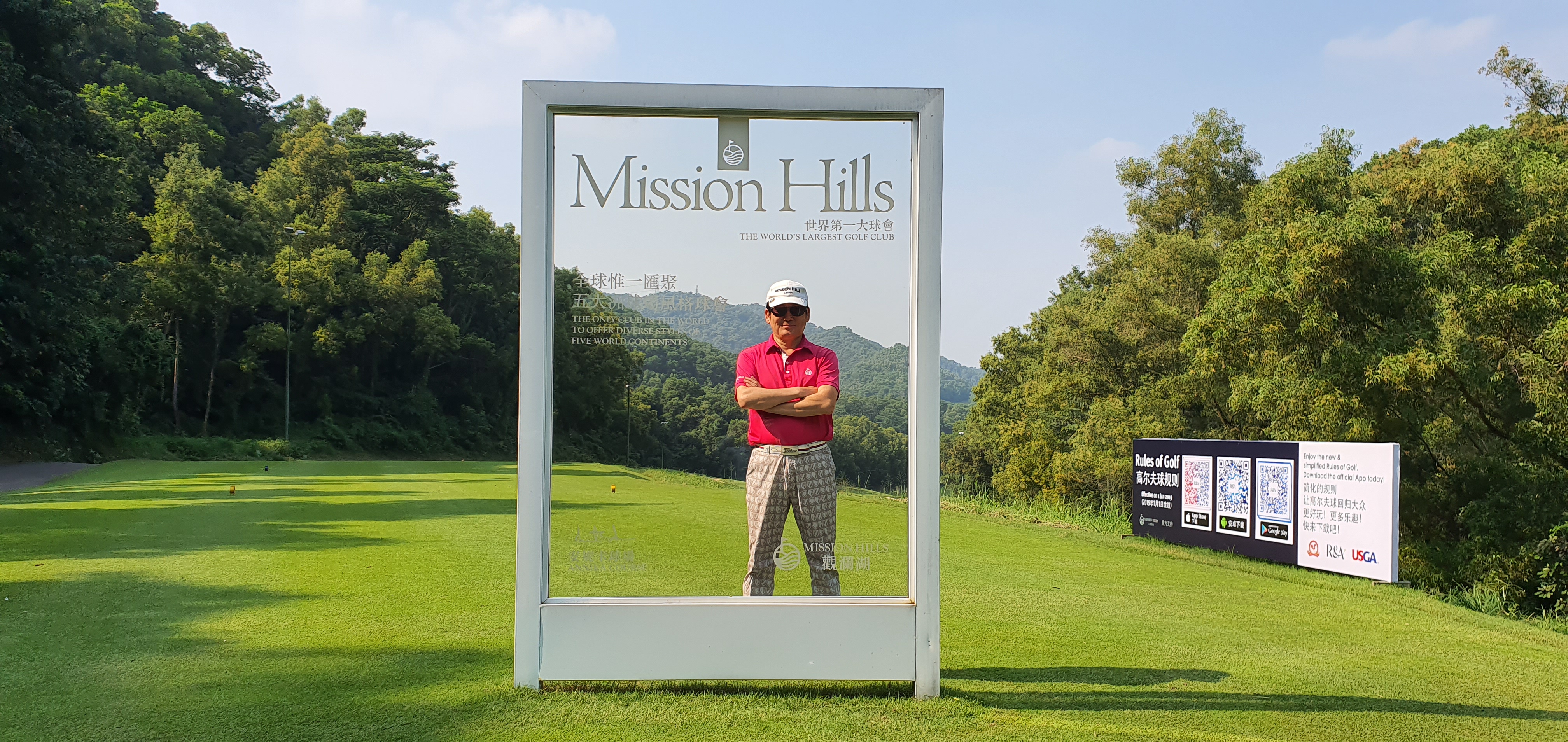 스타플레이어 헨드프린트와 포토존 - 동관, 심천 두 곳 클럽하우스로 가는 회랑에 골프 스타들과 은막의 스타들까지 백여개의 핸드프린트가 전시되어 있습니다. 사진은 세기의 맞수로 유명한 로이 맥길로이와 타이거 우즈가 나란히 서있다. 타이어우즈의 손이 생각 보다 많이 작아서 뜻 밖이었습니다. 잡지의 표지모델을 연상케 하는 포토존이 재미납니다. 모든 코스의 1번 홀에 설치되어 있습니다.