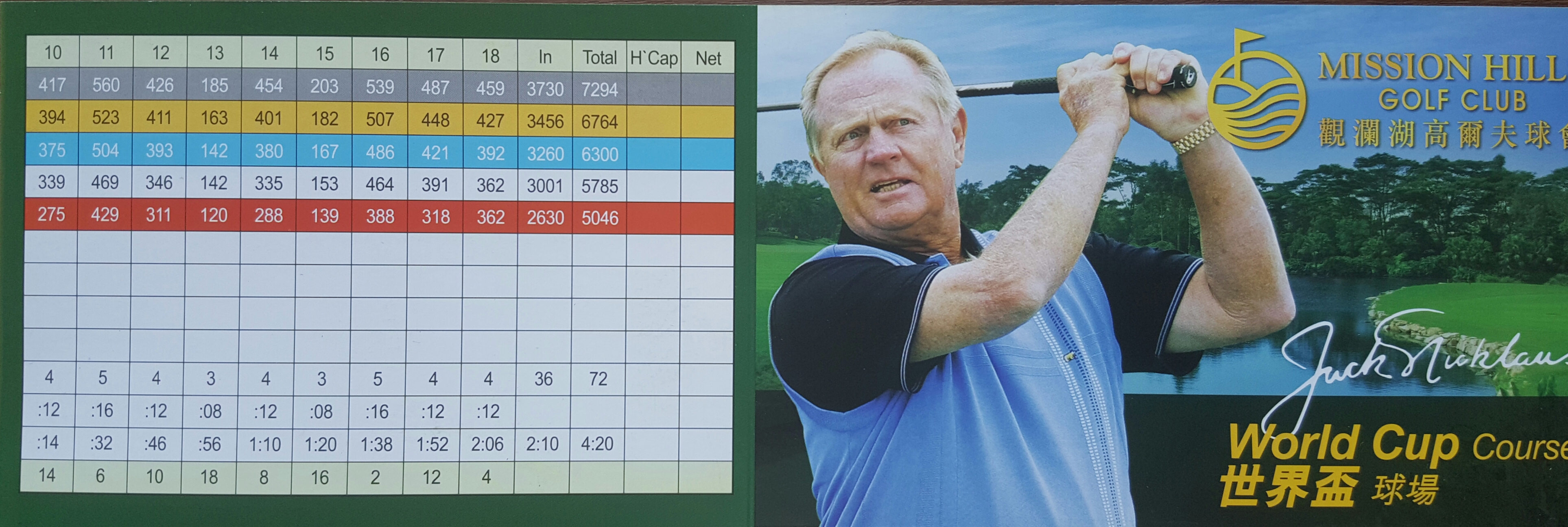 심천 미션힐스 코스중 가장 인기가 높은 코스입니다 . 잭 니클라우스가 설계한 곳으로 1992년 개장했습니다. 몇년후 골프월드컵 대회를 이곳에서 치른 후 코스 이름을 월드컵 코스로 바꾸었습니다 . 12개 코스중 유일하게 디자이너의 이름으로 불리우지 않는 코스입니다 .