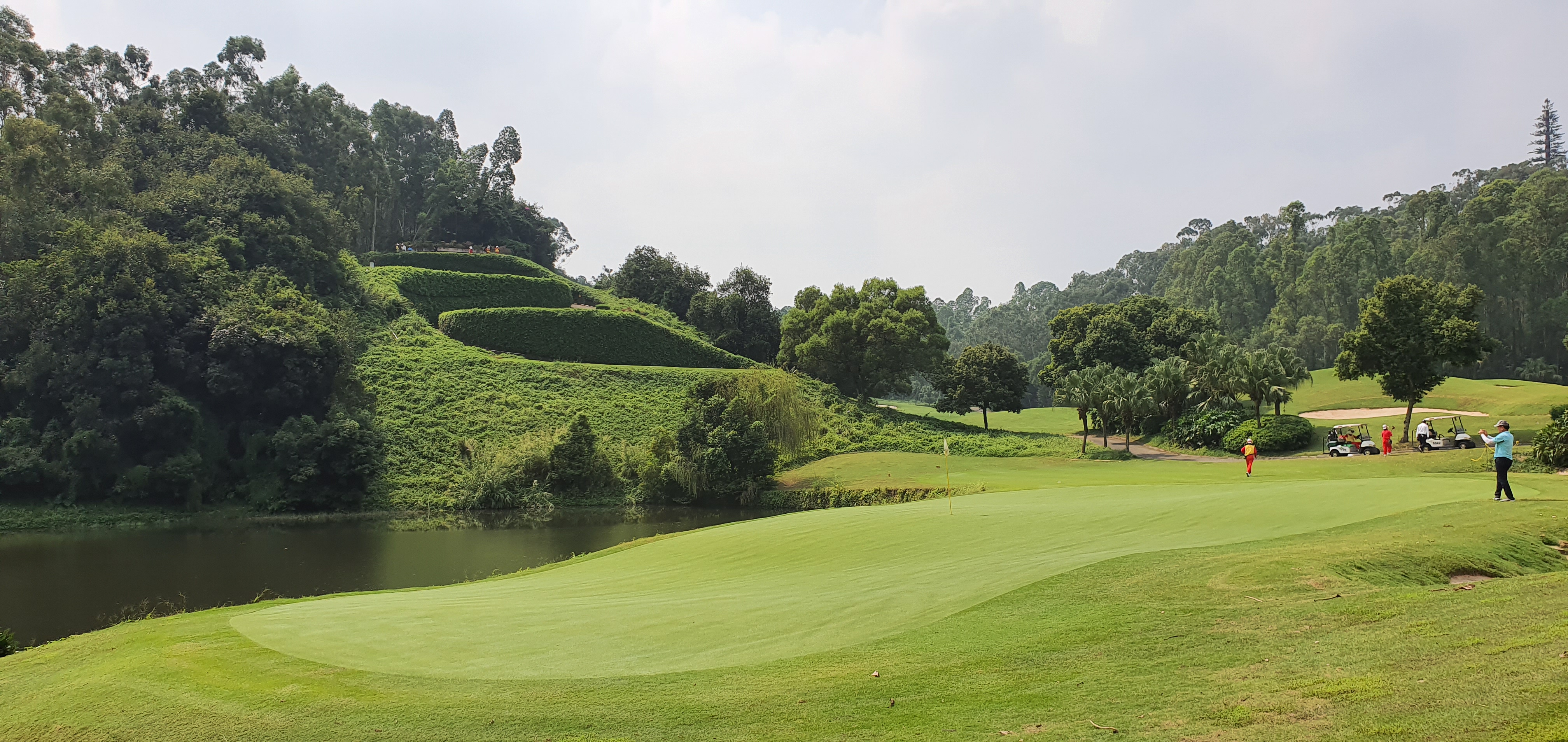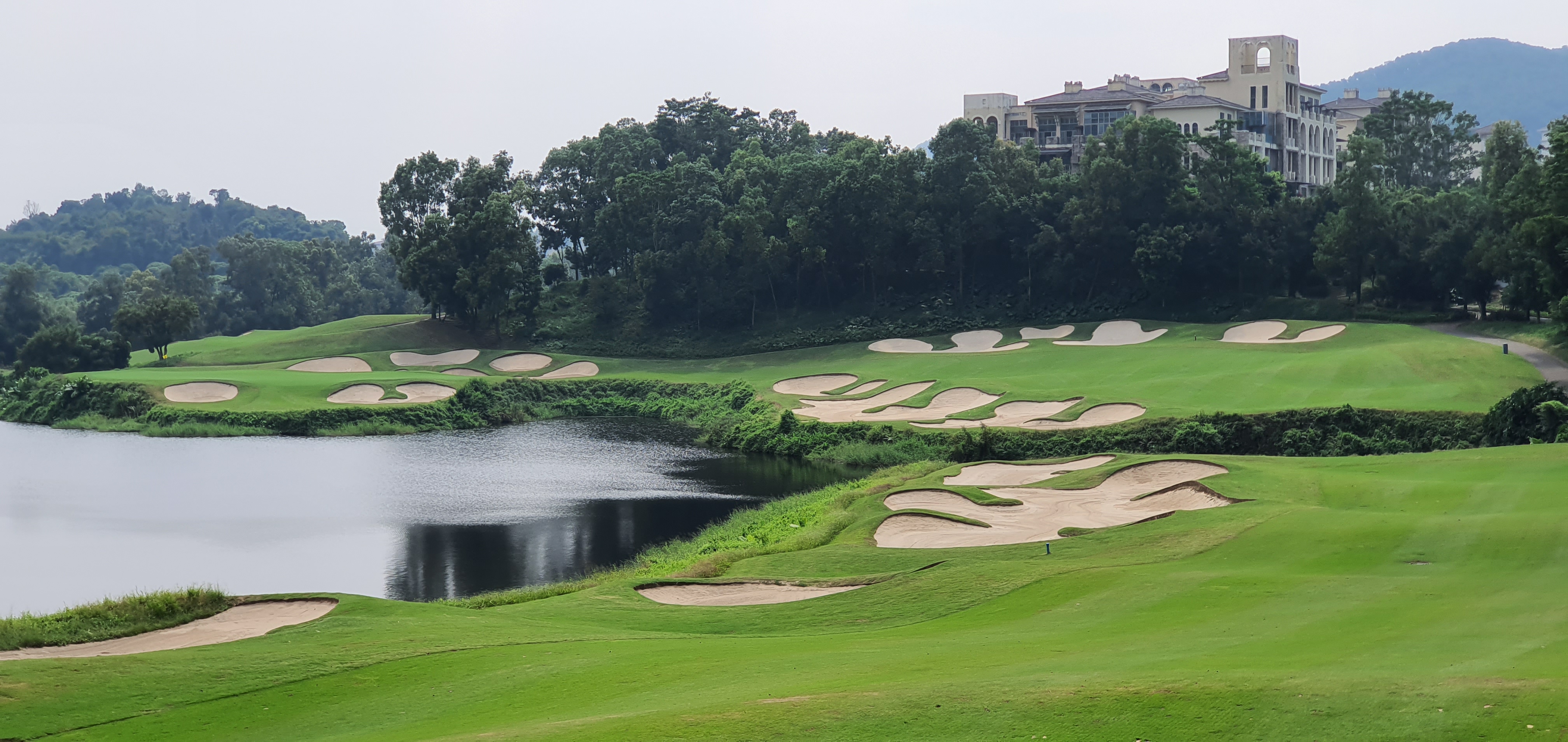 심천미션힐스 코스설계자들이 대부분 유럽인들인데, 두명의 동양인이 있습니다. 12개 코스중 유일한 파3코스를 설계한 중국인 장위엔과 일본인 오자키입니다. 오자키코스 는 #심천클럽하우스 소속(?)으로 동관쪽 코스에 비해 조금 쉬운편이지만 오자키 코스는 독특한 홀들이 몇곳이 있고 난이도도 그리 낮지는 않습니다 . 가장 아름다운 시그니쳐홀은 파3코스인 6번 홀입니다 .