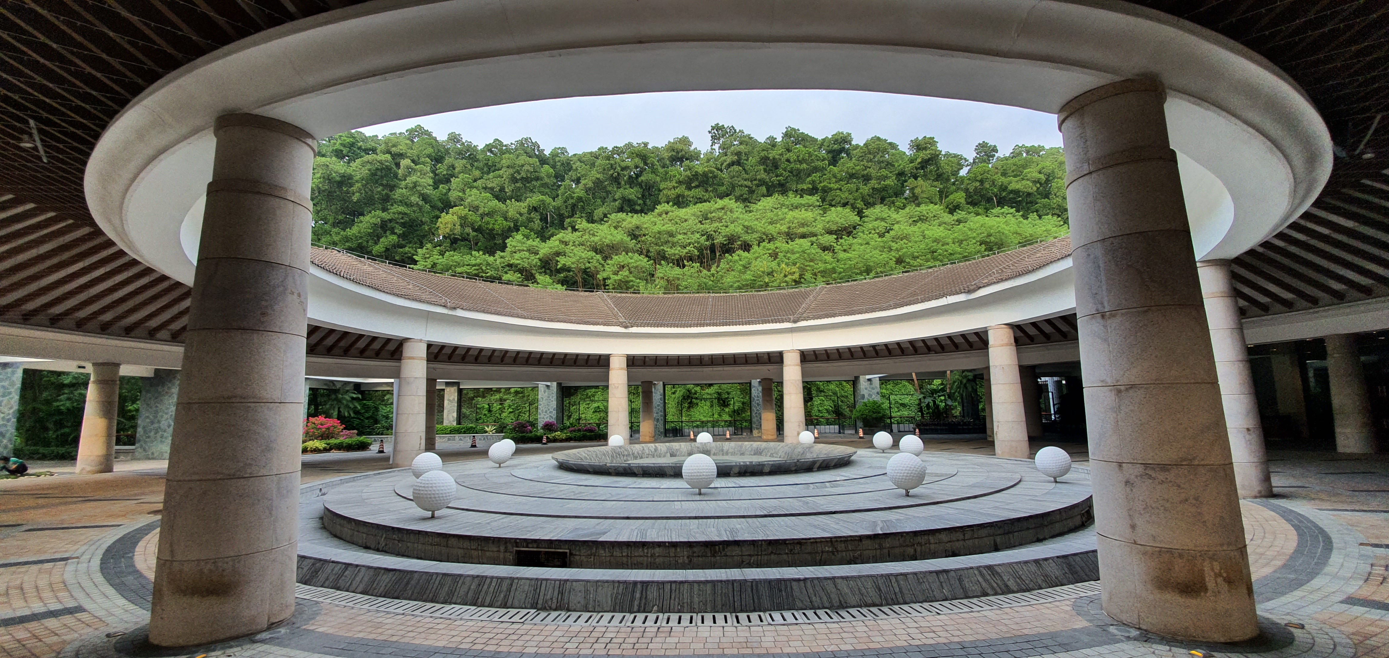심천미션힐스 클럽하우스 입구 - 12개 코스를 디자인한 골프계의 거물들 ( 비제이싱, 닉팔도,잭니클라우스, 오자키.피터다이, 리더베터, 애니카, 올라자발 등 골프 수퍼스타들이 반갑게 맞이 합니다 )