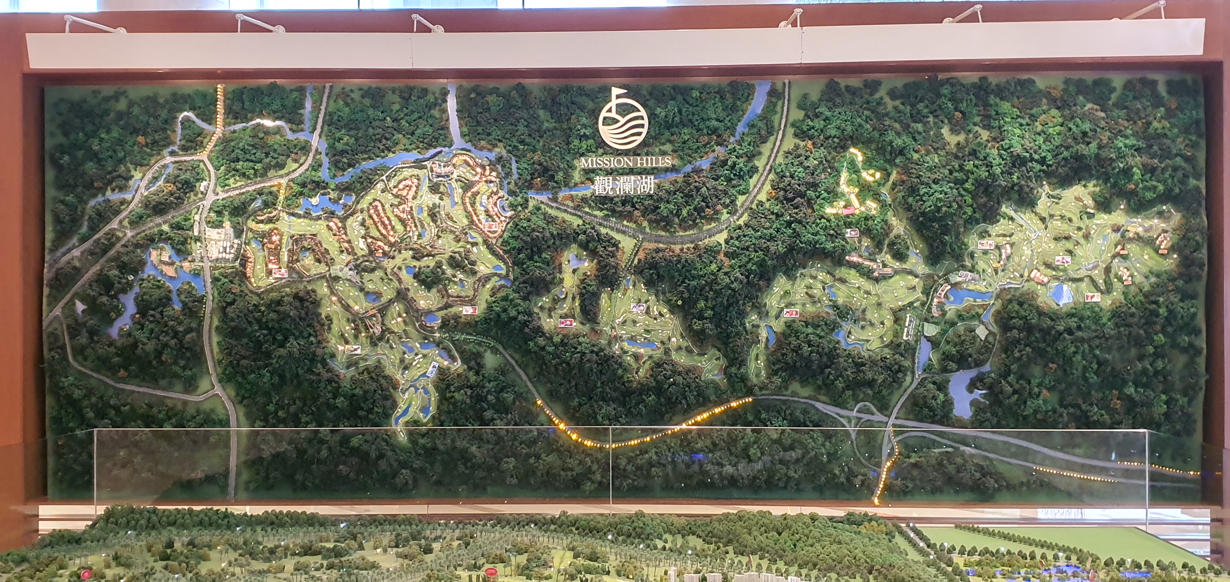 심천미션힐스 전도 - 12개 코스가 포진한 미션힐스 전도 , 왼쪽이 심천코스 (5개) 오른쪽이 동관코스( 5개) 중간이 미드밸리 (2개)입니다. 3곳에 각각 클럽하우스가 하나씩 있습니다. 동관에서 심천으로 이동하려면 셔틀버스를 이용하는데 차량으로 20~30분이 걸립니다.