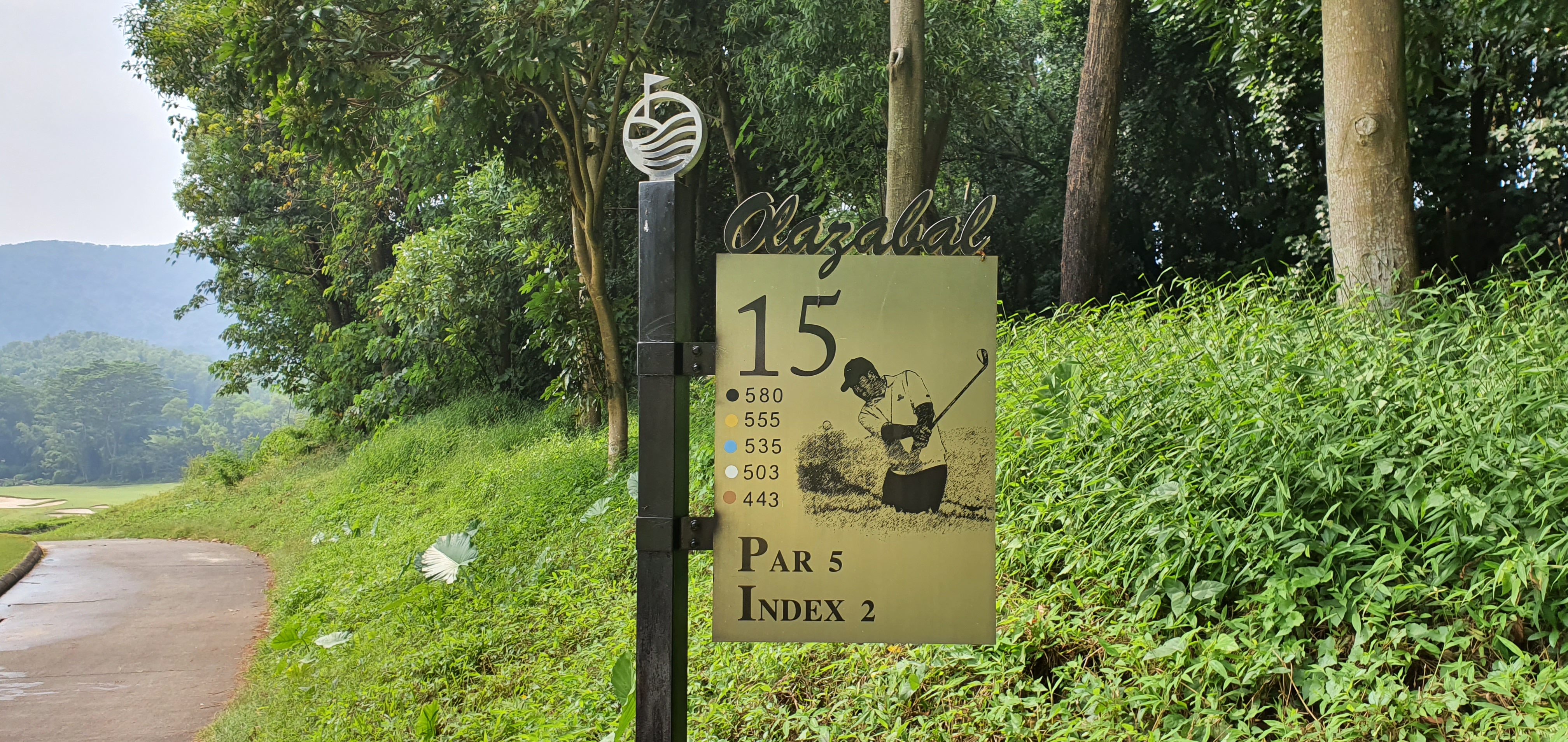 올라자발코스의 압권은 15번홀 파5코스입니다 전장 555야드( 엘로우 티 기준)로 핸디캡 2번홀인데, 한 홀에 벙커가 24개가 있고 그린 주변에 15개가 모여있습니다. 올라자발 코스의 전체 벙커수는 무려 150개가 넘습니다.