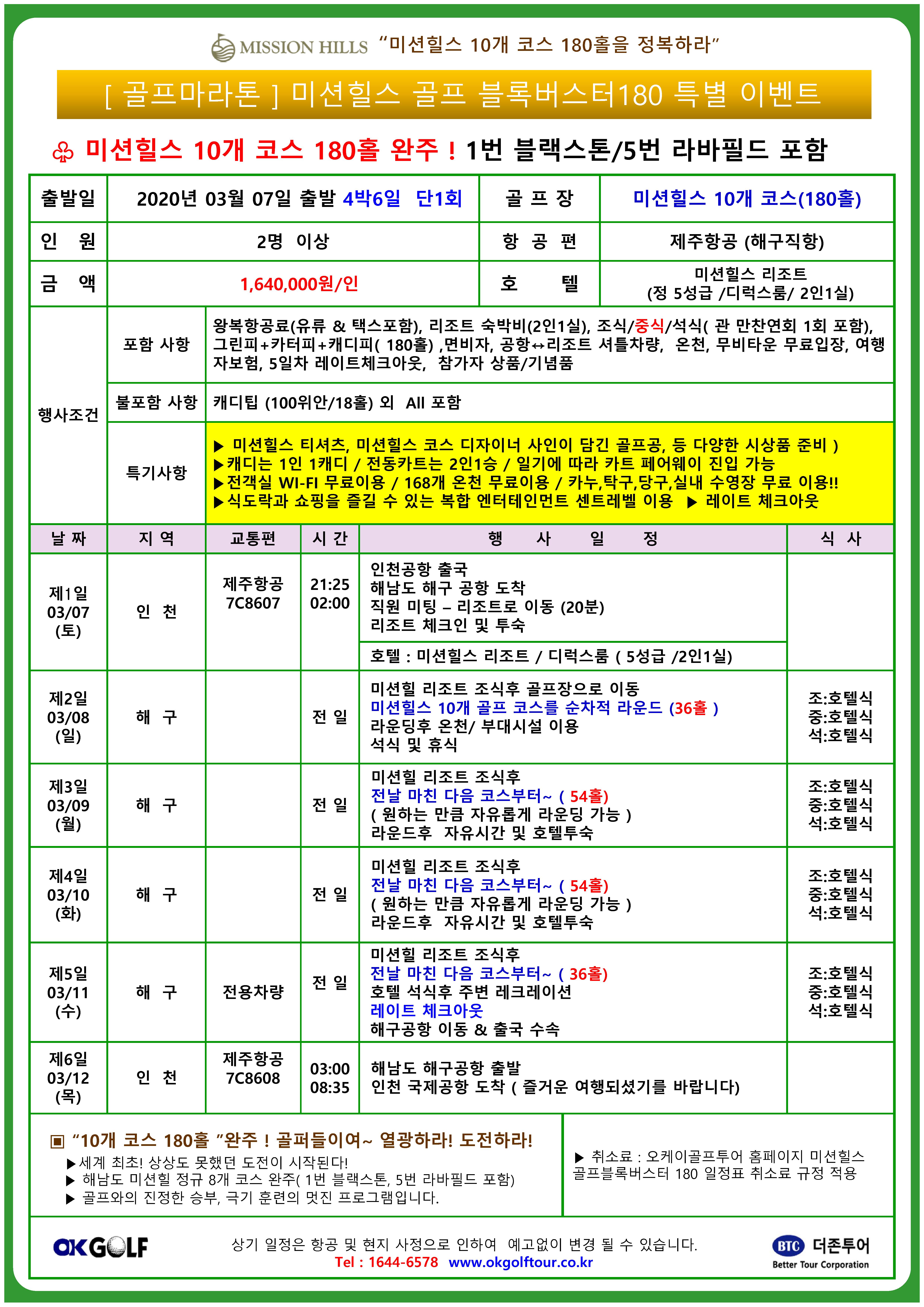 ⛳ [골프마라톤180] 하이난 미션힐스 골프 블록버스터 180H 이벤트 개요