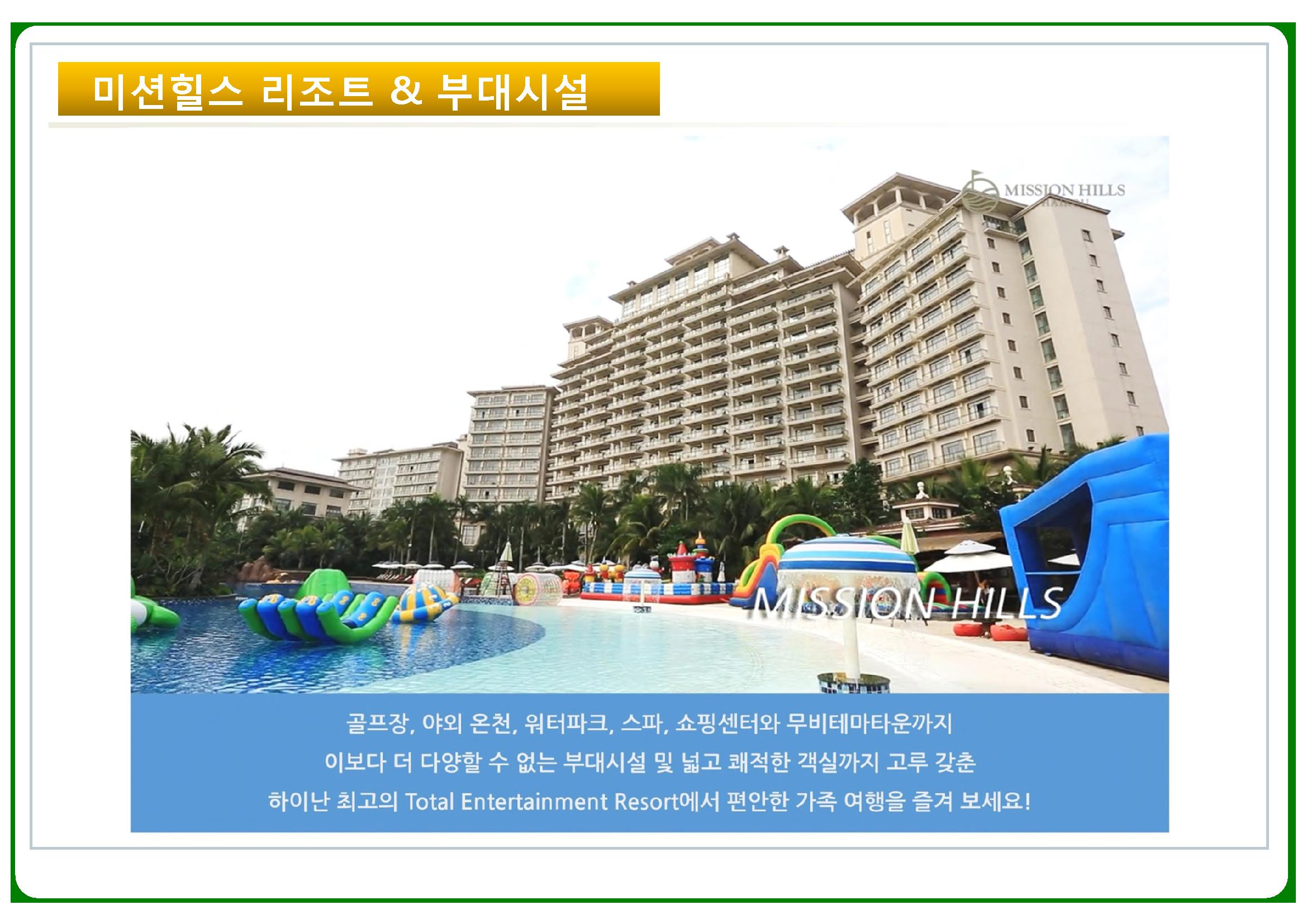 | [미션힐골프] 하이난 미션힐스 총정리 & 상품비교 안내 (0) | 2019.12.13 |