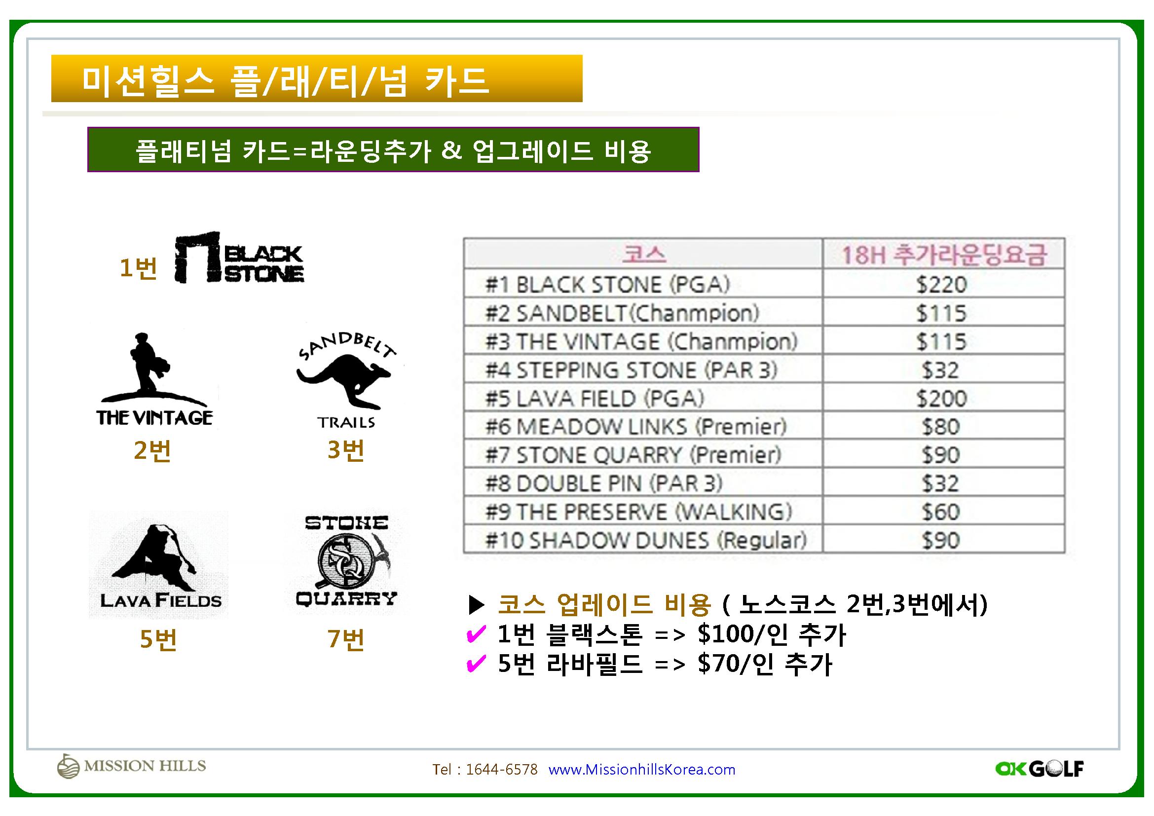 - 파3 두곳과 챔피언코스 1번 블랙스톤 제외 ( 업그레이드 불가)