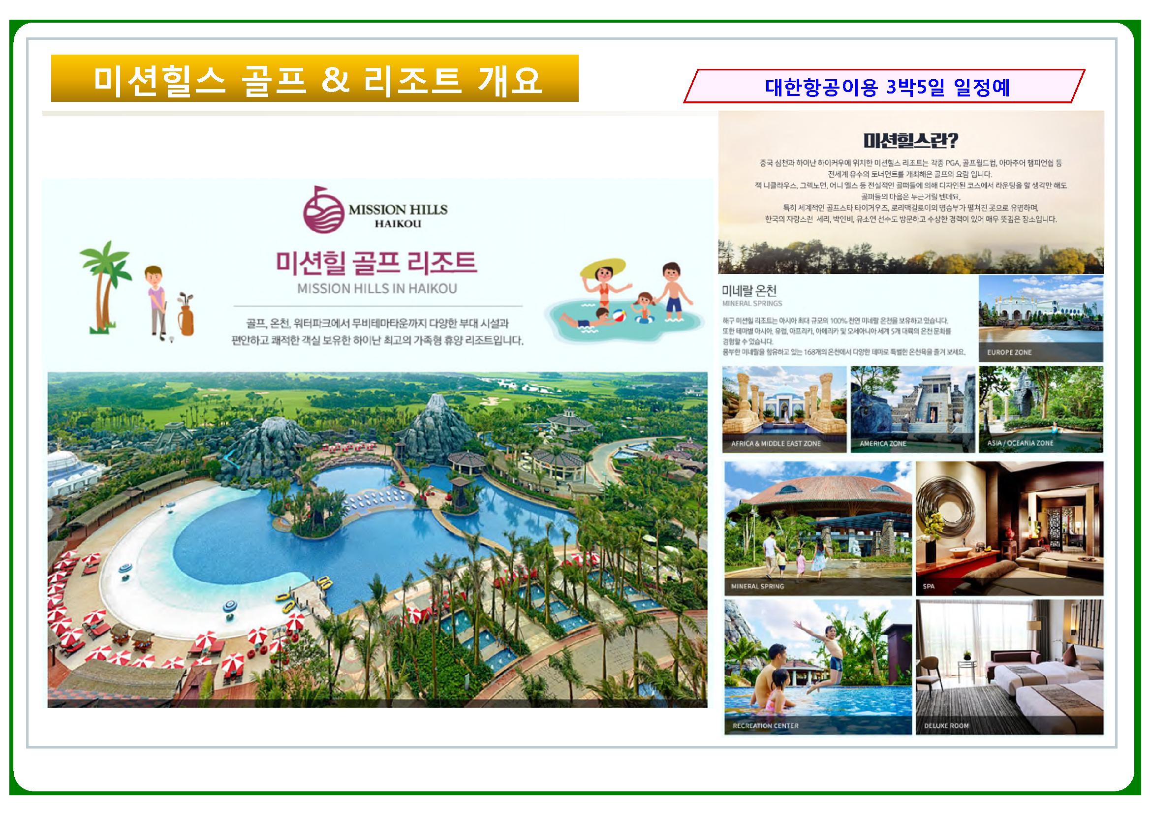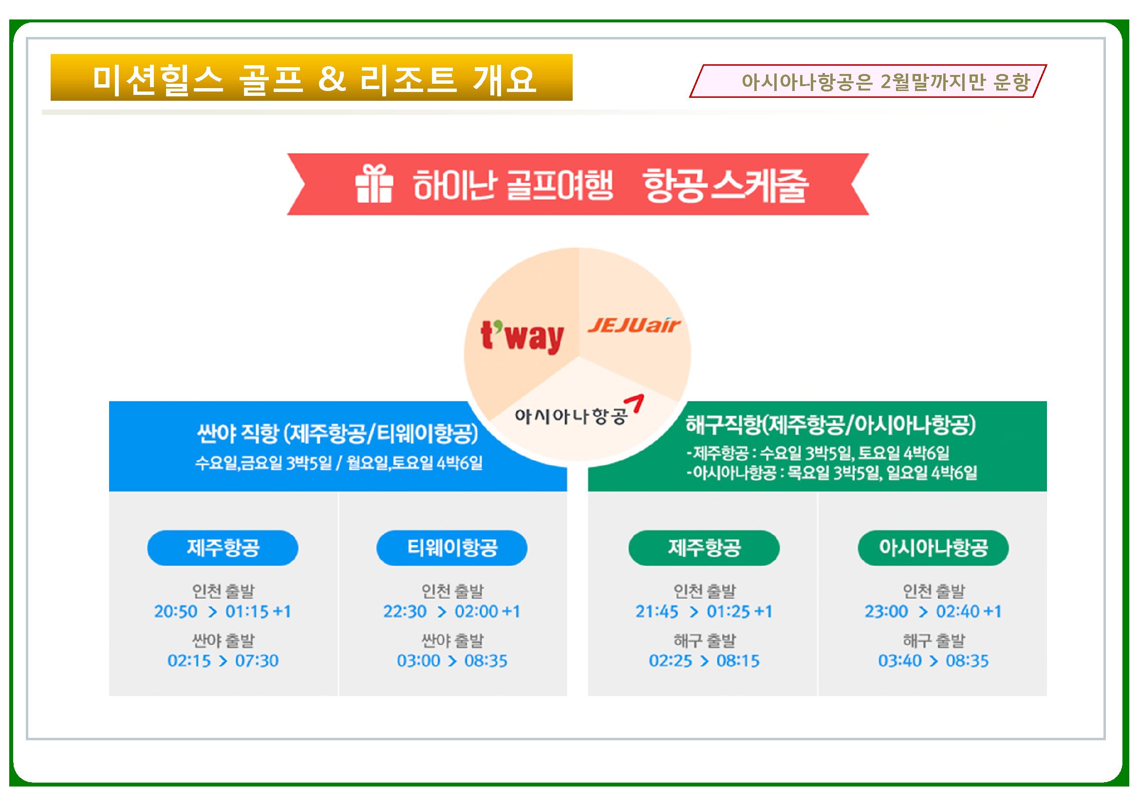 [하이난미션힐스] 미션힐스골프여행 일정표 ( 참고용)