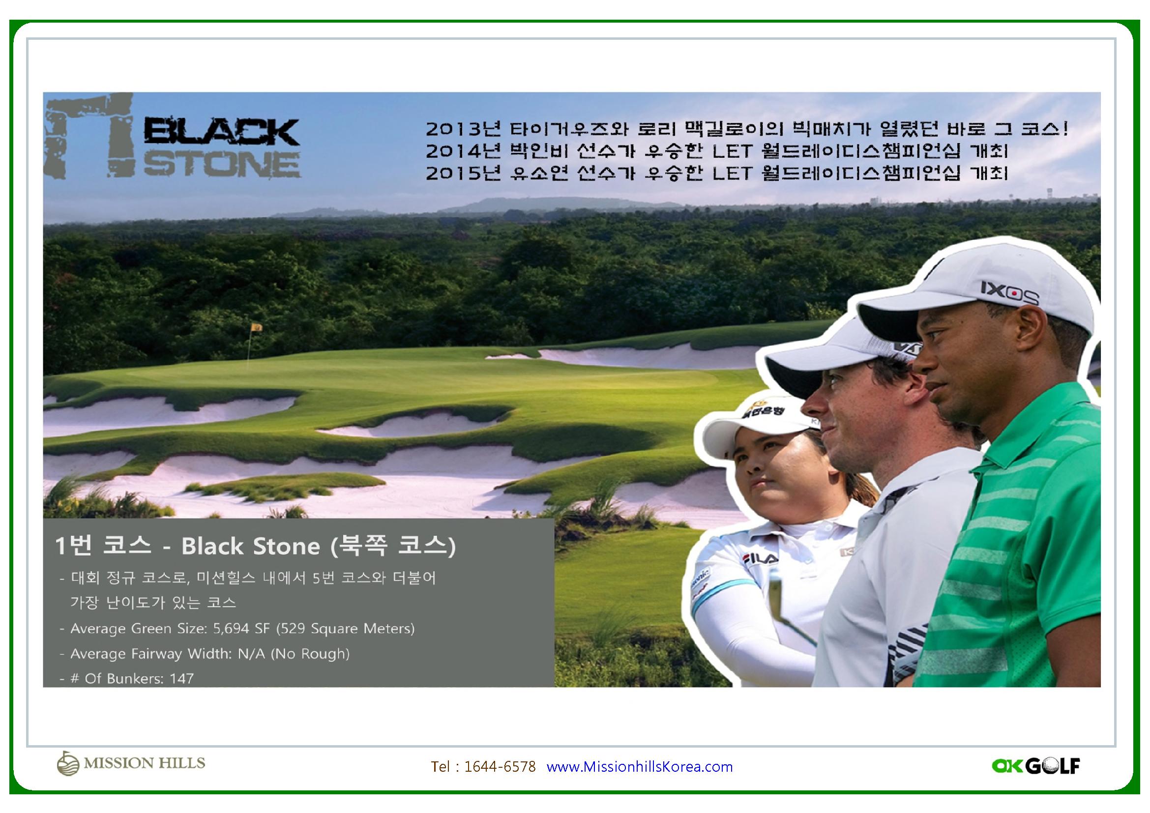 ✔ Mission Hills는 중국 골프의 발상지라 할 수 있을 만큼 상징적인 의미를 가지고 있습니다. 골프 월드컵(World Cup of Golf) 및 아시안 아마추어 챔피언십(Asian Amateur Championship)을 포함한 지역의 가장 중요한 토너먼트가 이곳에서 열리고 있습니다.