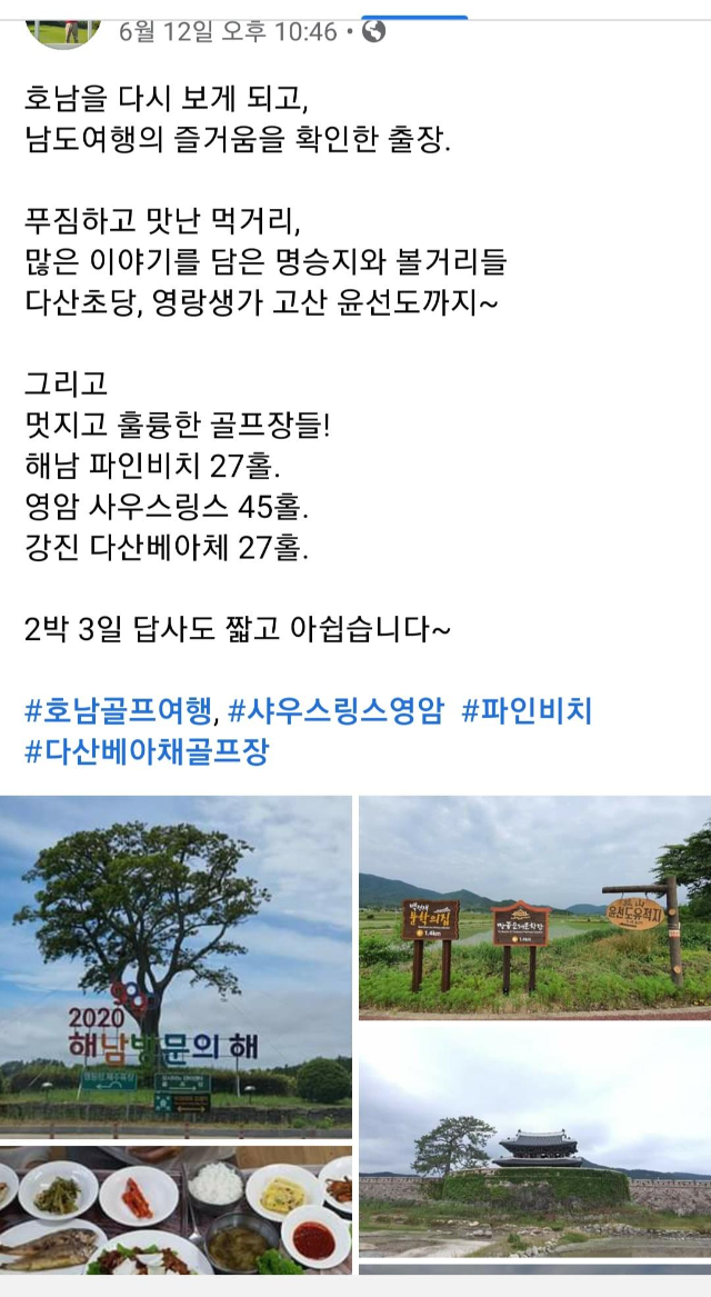 | [내나라골프] 전남 대표 코스 두 곳과 5성급 호텔의 Collaboration!! (0) | 2020.06.02 |
