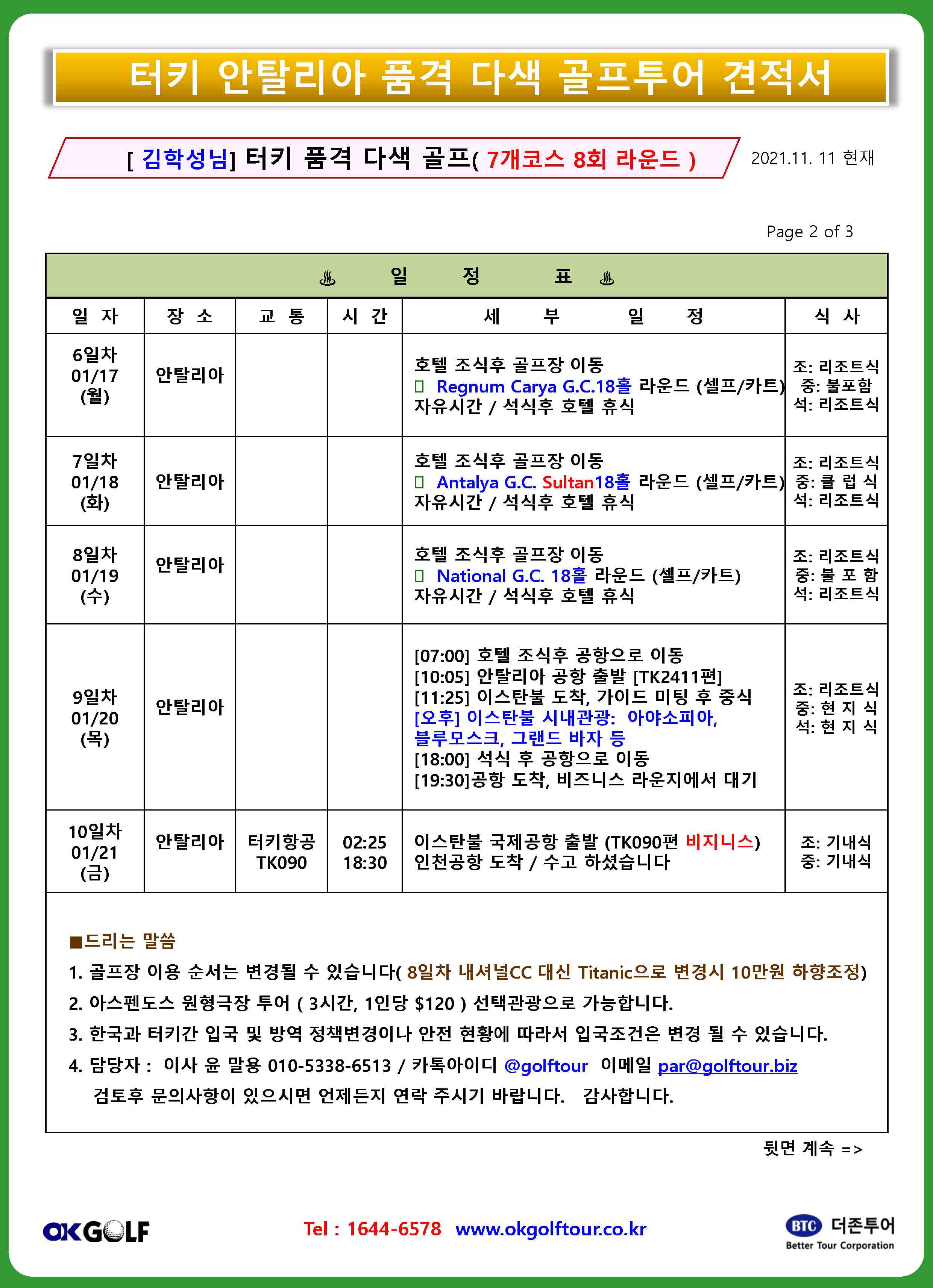 ⛳ [터키골프] 안탈리아 골프여행 ( 8일, 10일)
