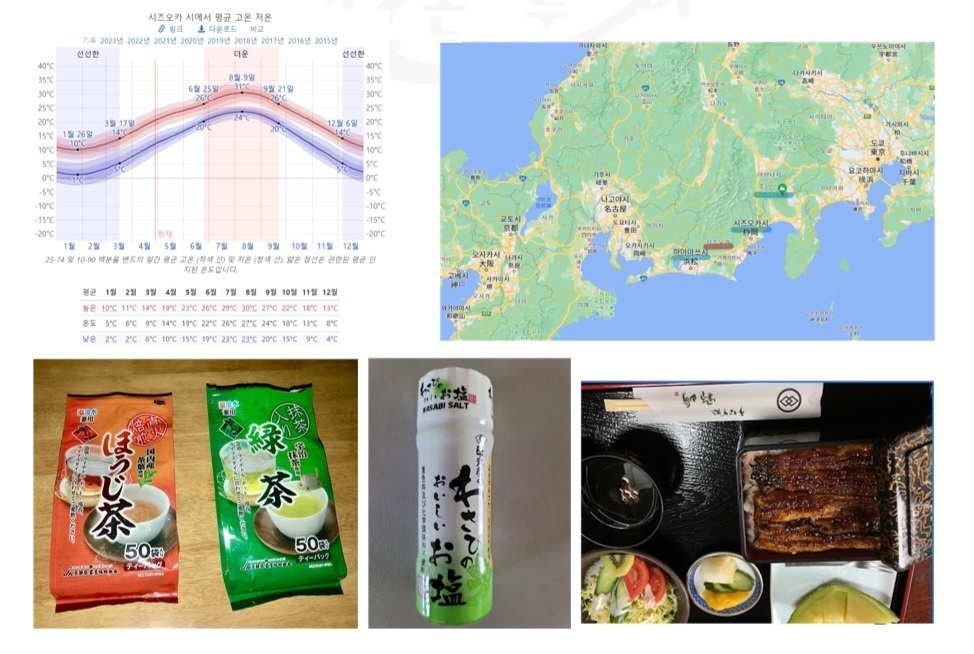 뒤로는 후지산 앞으로는 태평양을 바라보고 있는 시즈오카현은 바닷 바람의 온화한 기후 때문에 차 생산지로 유명하다. 우스갯소리로 시즈오카는 시골집의 텃밭도 차밭이라는 이야기가 있을 정도이다.