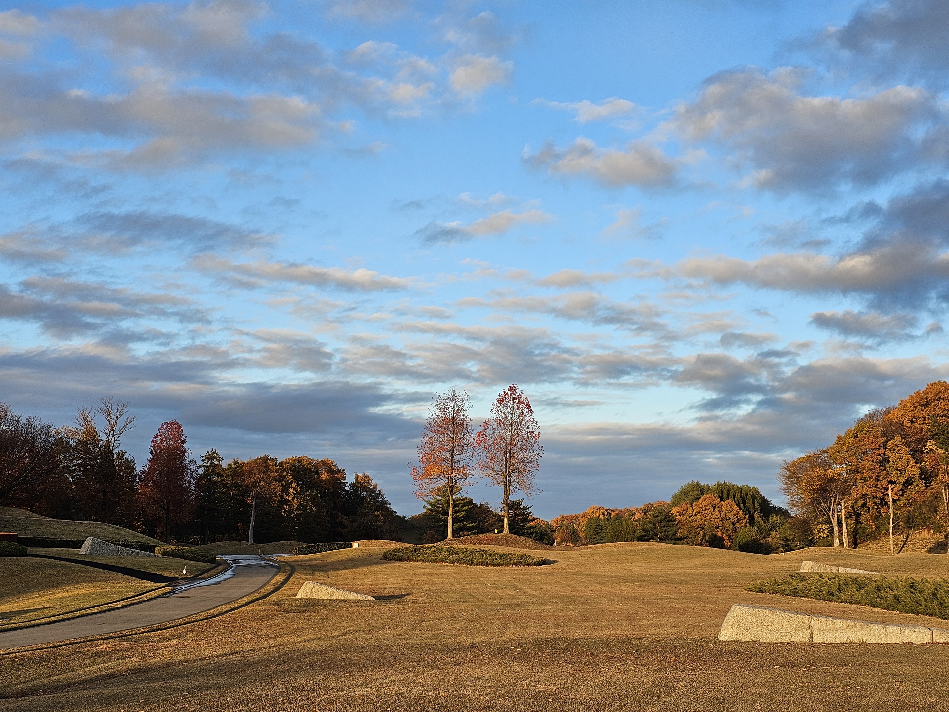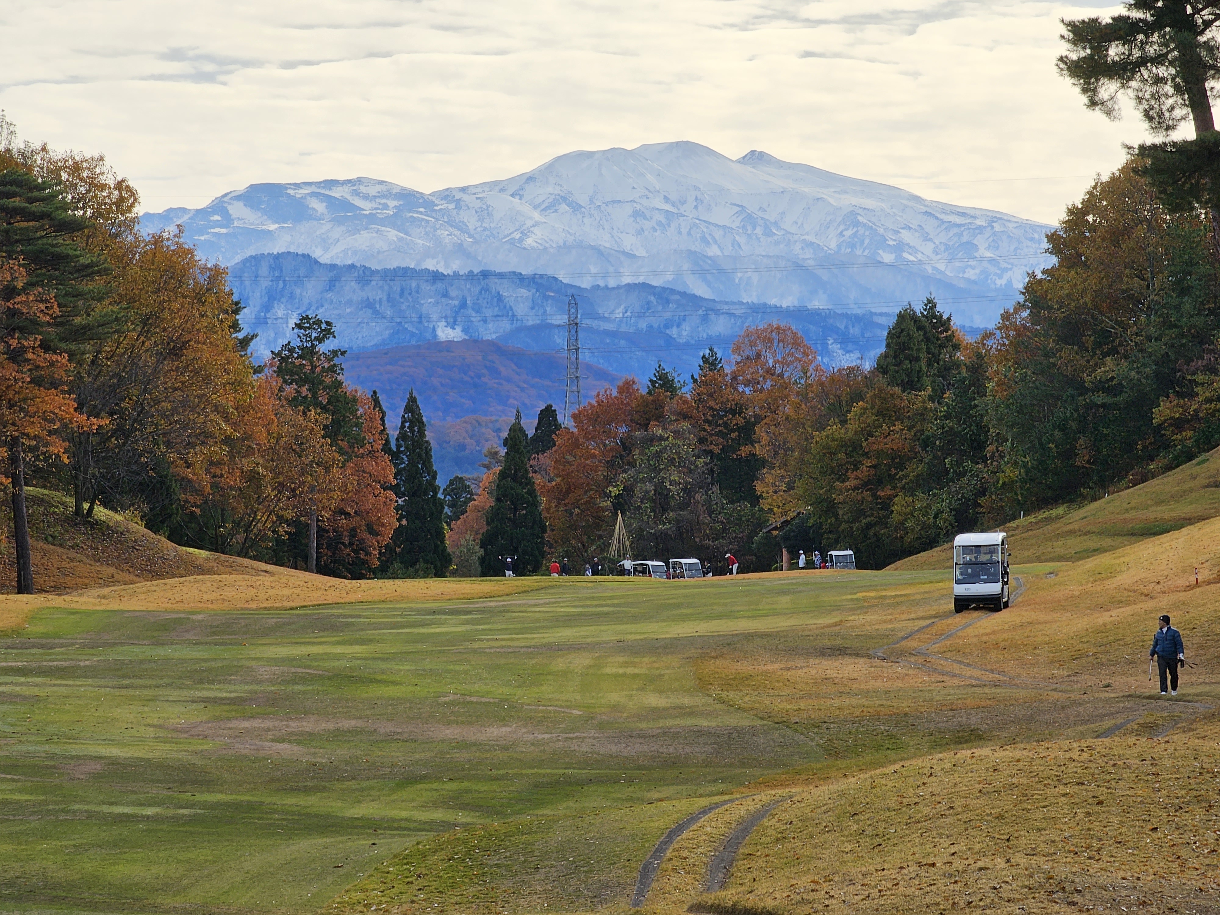 2023년 11월 26일 촬영 / 고지대 산은 벌써 눈으로 덮혀 있다. 파란잔디와 붉은 단풍에 흰눈까지 색의 향연을 보는 듯 하다.