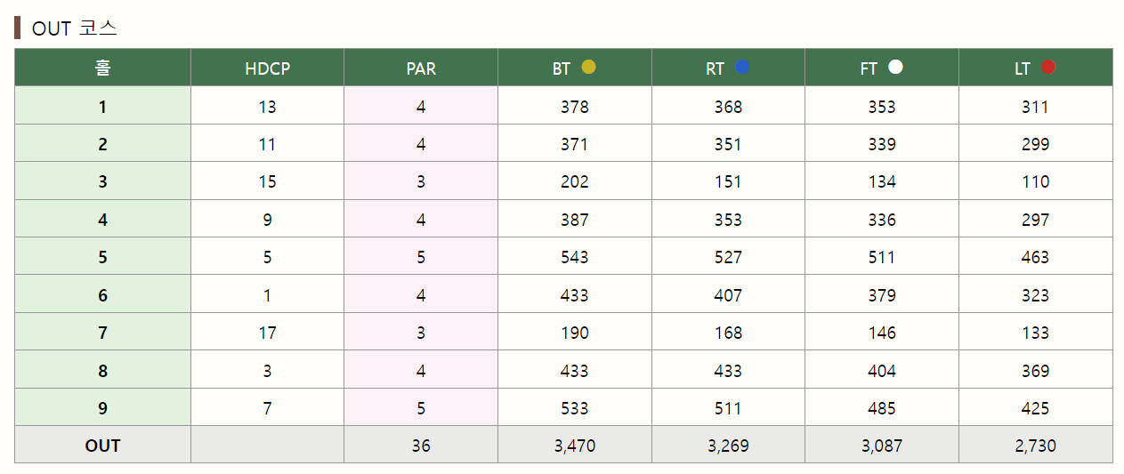 - 각종 토너먼트 개최코스로 치밀한 전략성과 고도의 테크닉을 요하는 코스.