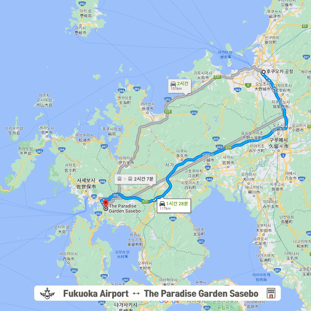 후쿠오카공항 -> 골프장 이동시간 : 약 1시간 20분 소요 / 송영차량 이용