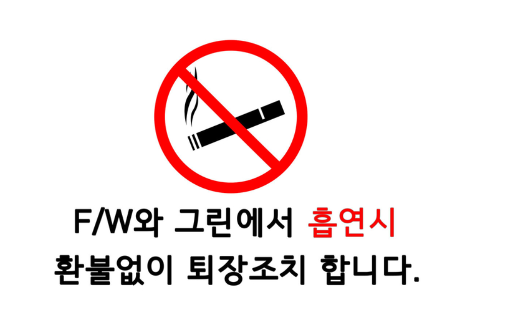 흡연은 지정된 흡연 부스에서만 가능 (티박스, 페어웨이 금지)