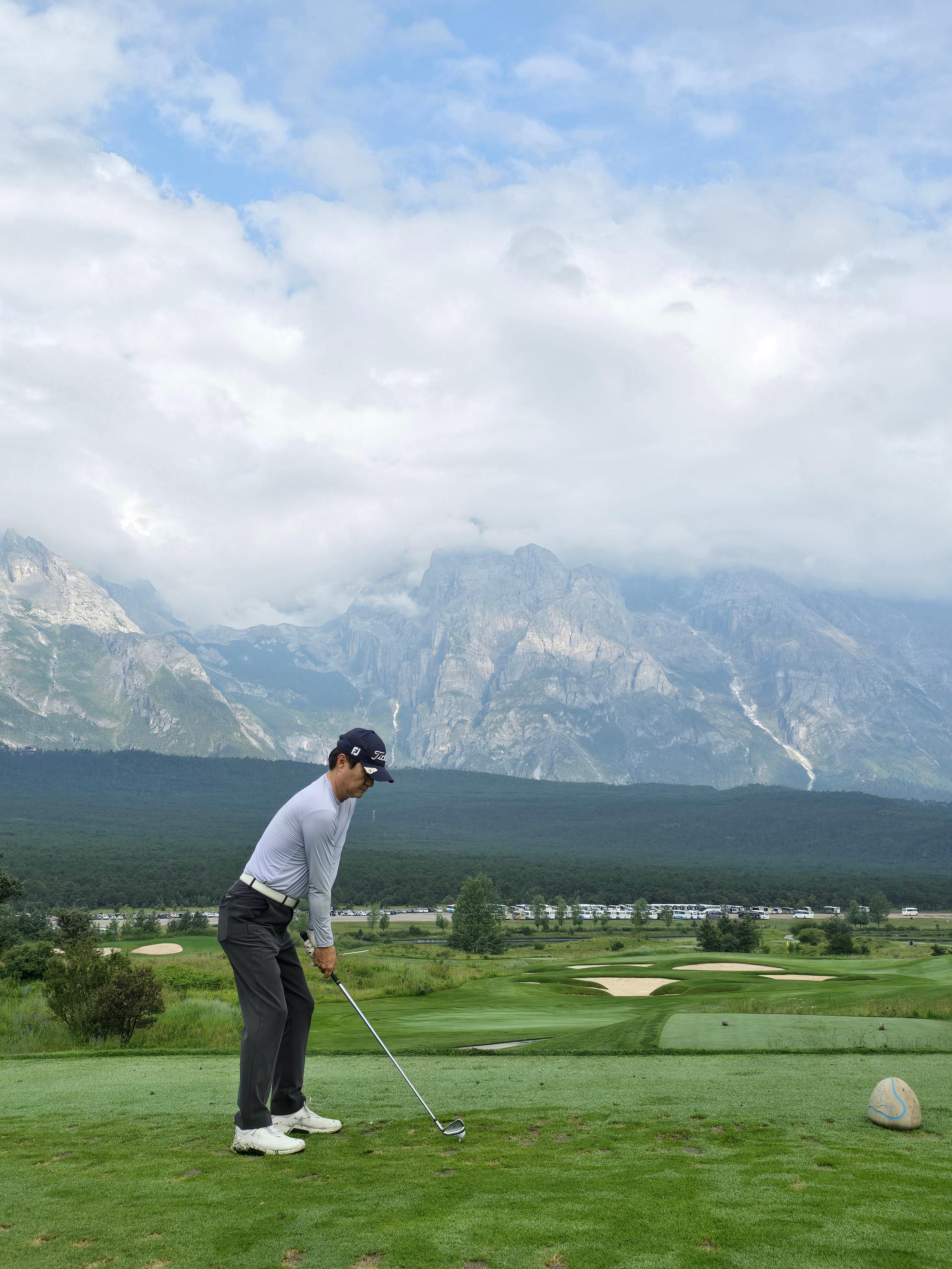 오랫동안 꿈꿔왔던 골프 버킷리스트 중 하나를 드디어 실현했다. 만년설 덮인 옥룡설산을 병풍 삼아 라운드를 즐기는 일이다. 옥룡설산 골프장 ( Jade Dragon Snow Mountain Golf Club) 은 해발 3,000m가 넘는 고지대에 있어서, 그야말로 '하늘 아래 가장 높은 곳'에서 샷하는 특별한 골프라운드이다. 설레는 마음으로 드디어 그 웅장한 코스 위에 섰다.
