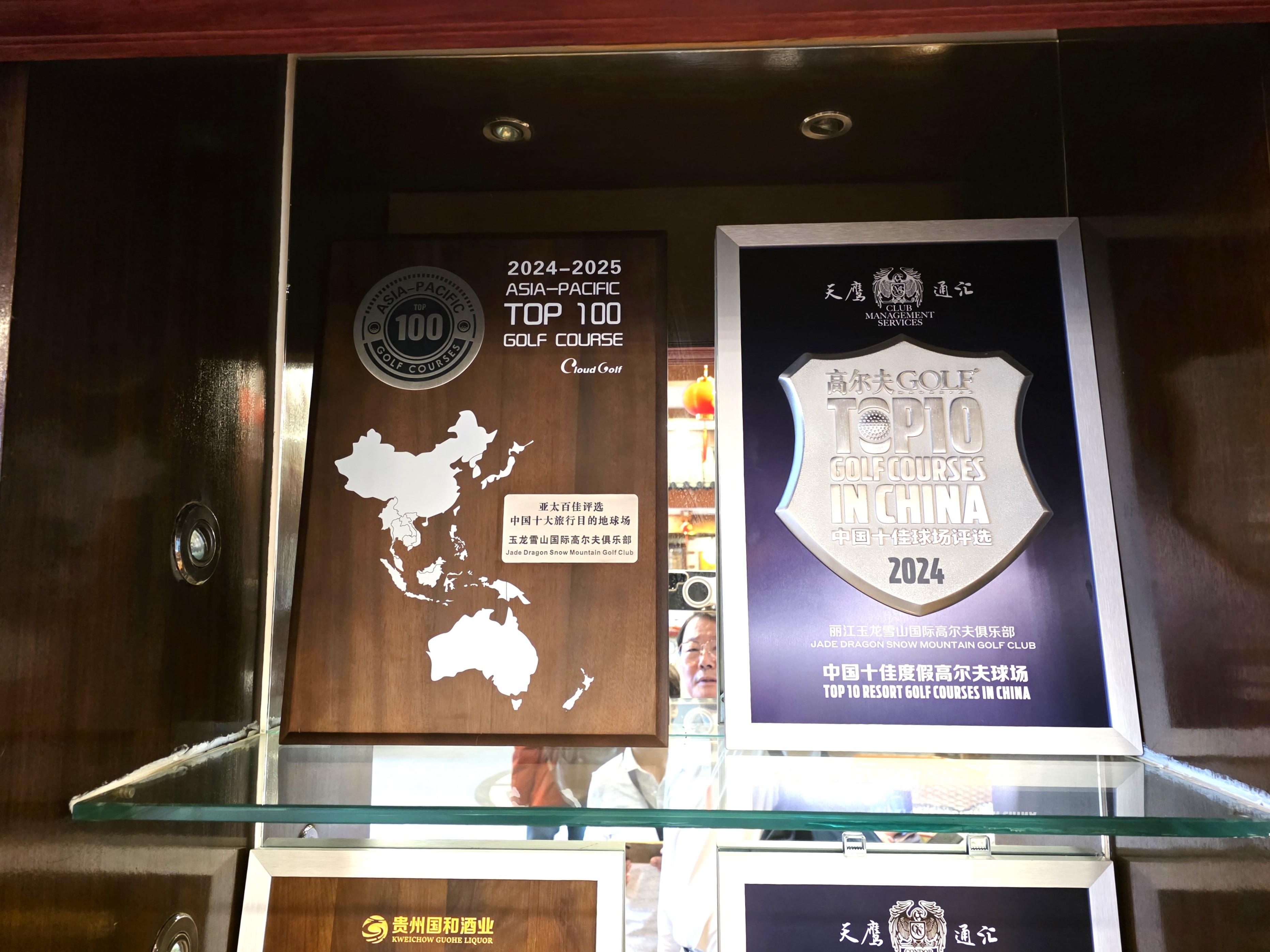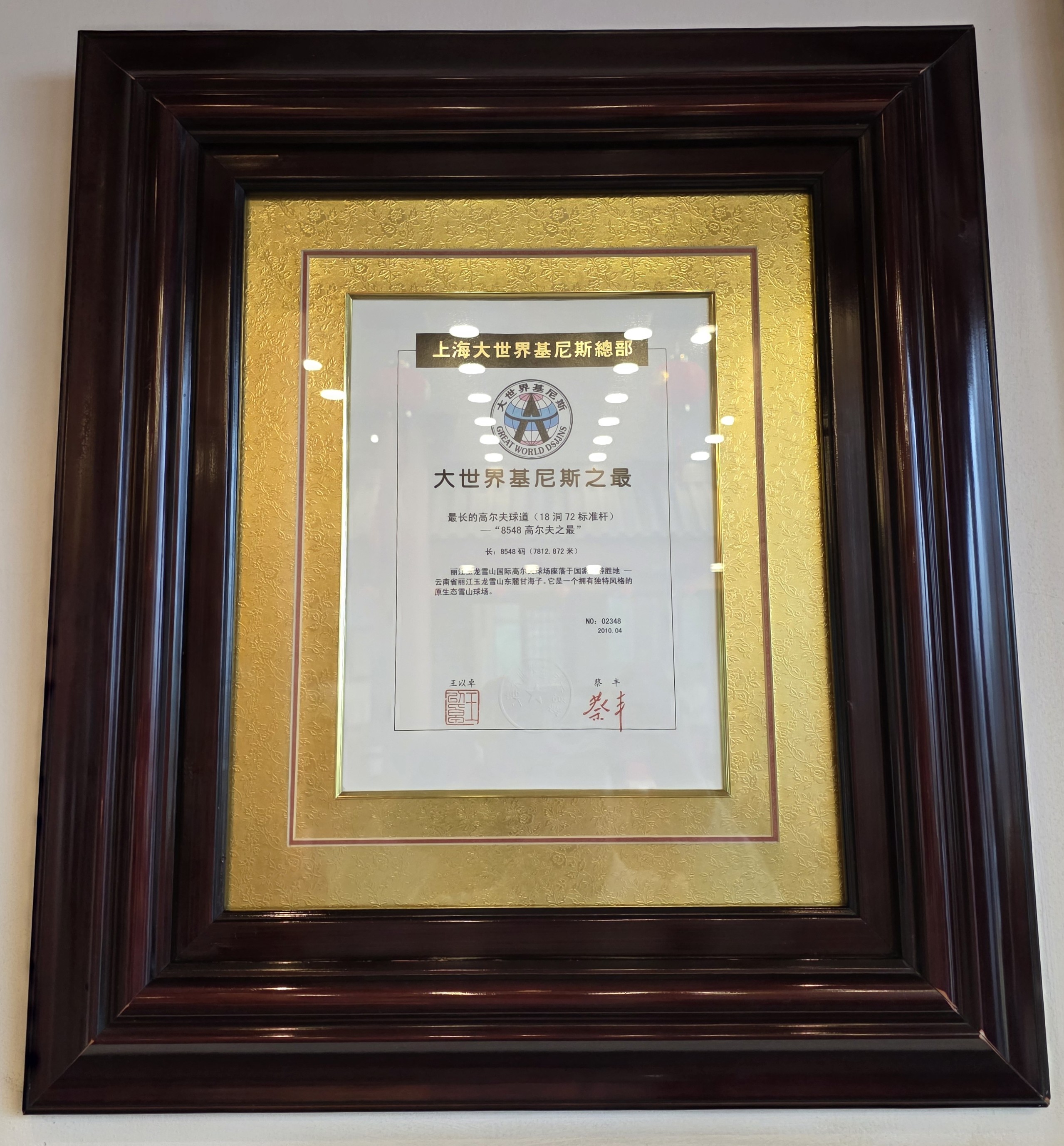 클럽하우스 입구에는 수 많은 상패들이 전시되어 있다. ' 중국내 가장 아름다운 골프장' '중국100대 골프장' '중국10대 골프장' 둥에 선정되었고, 세계에서 가장 긴 홀로 기네스 북에 등재되어 유명세를 타고 있다.