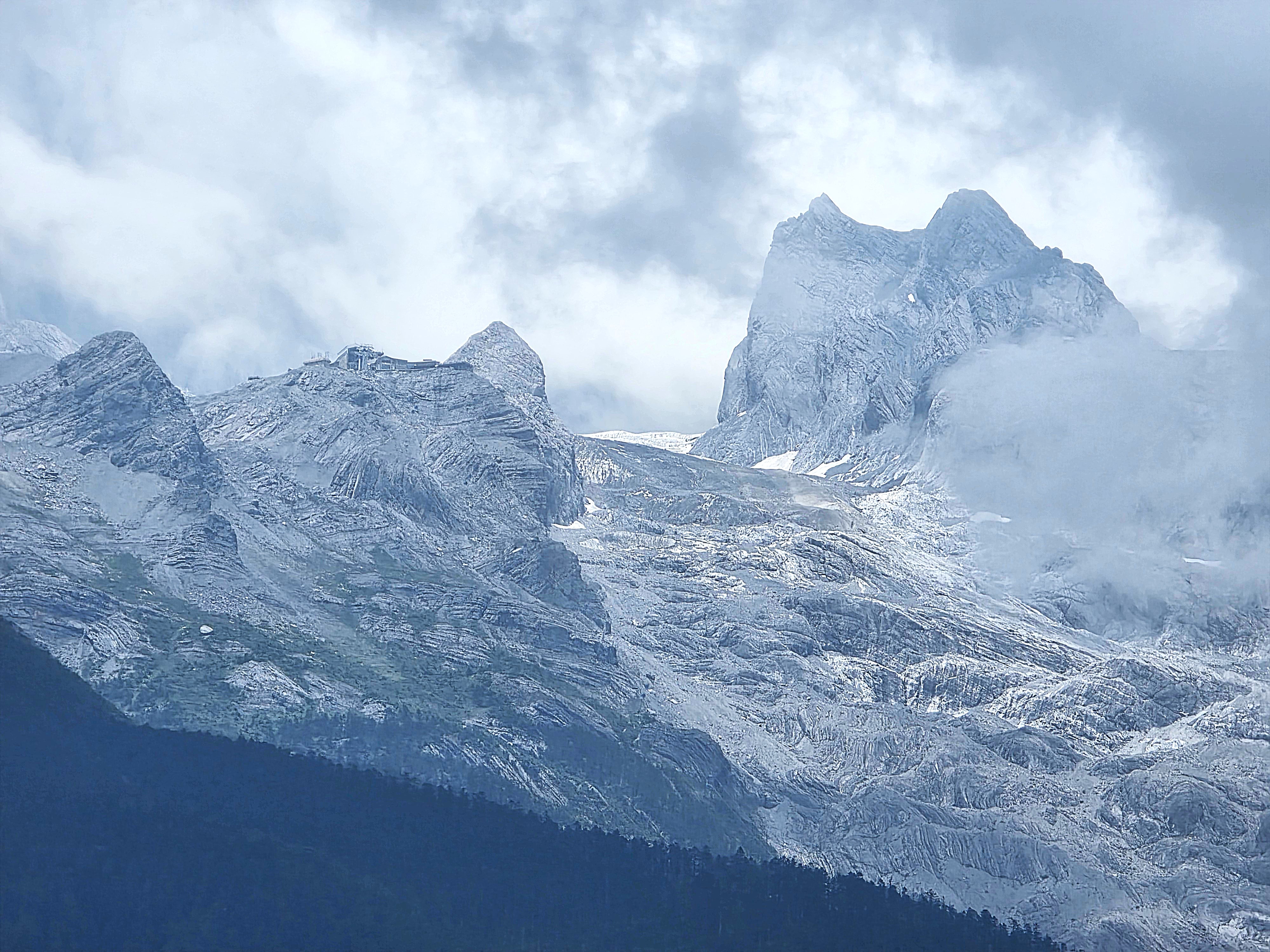 [사진설명] 여강의 상징인 옥룡설산(玉龙雪山)의 정상 부근 모습을 운좋게 촬영했다. 해발 5,596m에 달하는 이 설산은 구름과 함께 웅장한 풍광을 자랑하며, 골프장 어디서든 그 위용을 감상할 수 있다.
