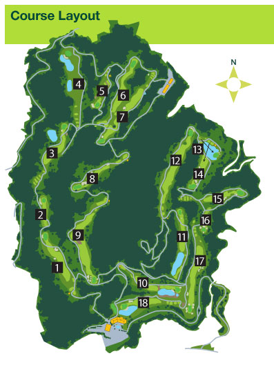 설계는 일본을 대표하는 코스 디자이너, 카토 슌스케가 맡았고. 힘」과 같이 「기술」도 필요하게 되는 18홀이다.