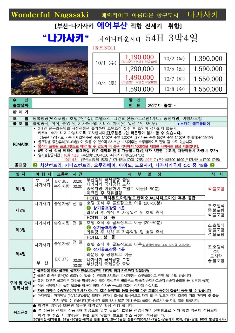 🔽 나가사키 ”차이나타운시티" 골프 여행상품 ( 부산출발)