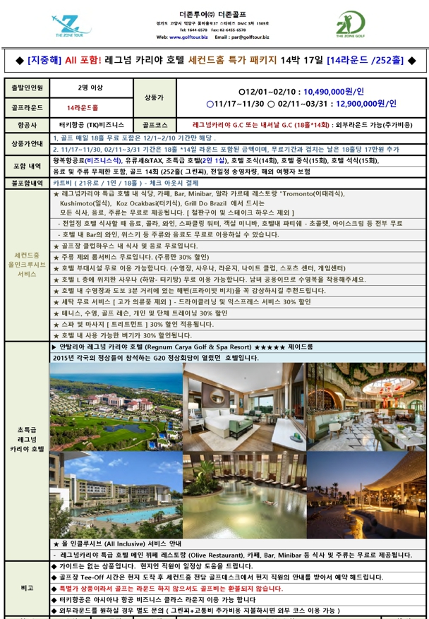 ⛳ 안탈리아 레그넘 카리야 호텔 세컨홈 특가 패키지 14박 17일 안내