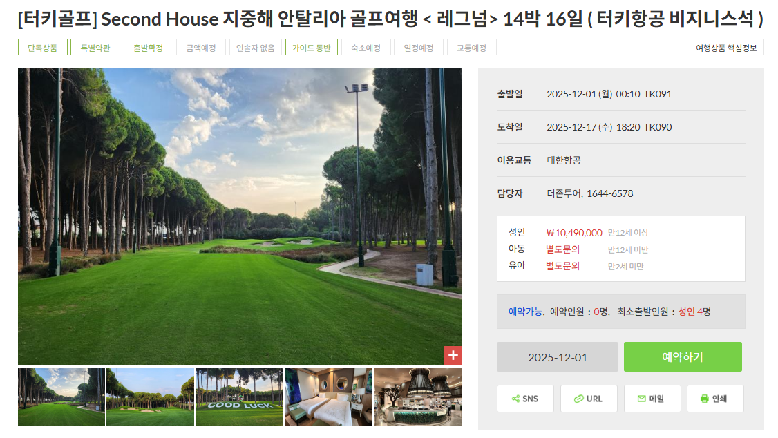 | [터키골프] 레그넘 카리야 호텔 세컨 홈 특가 패키지 (14박 17일) (0) | 2025.09.12 |