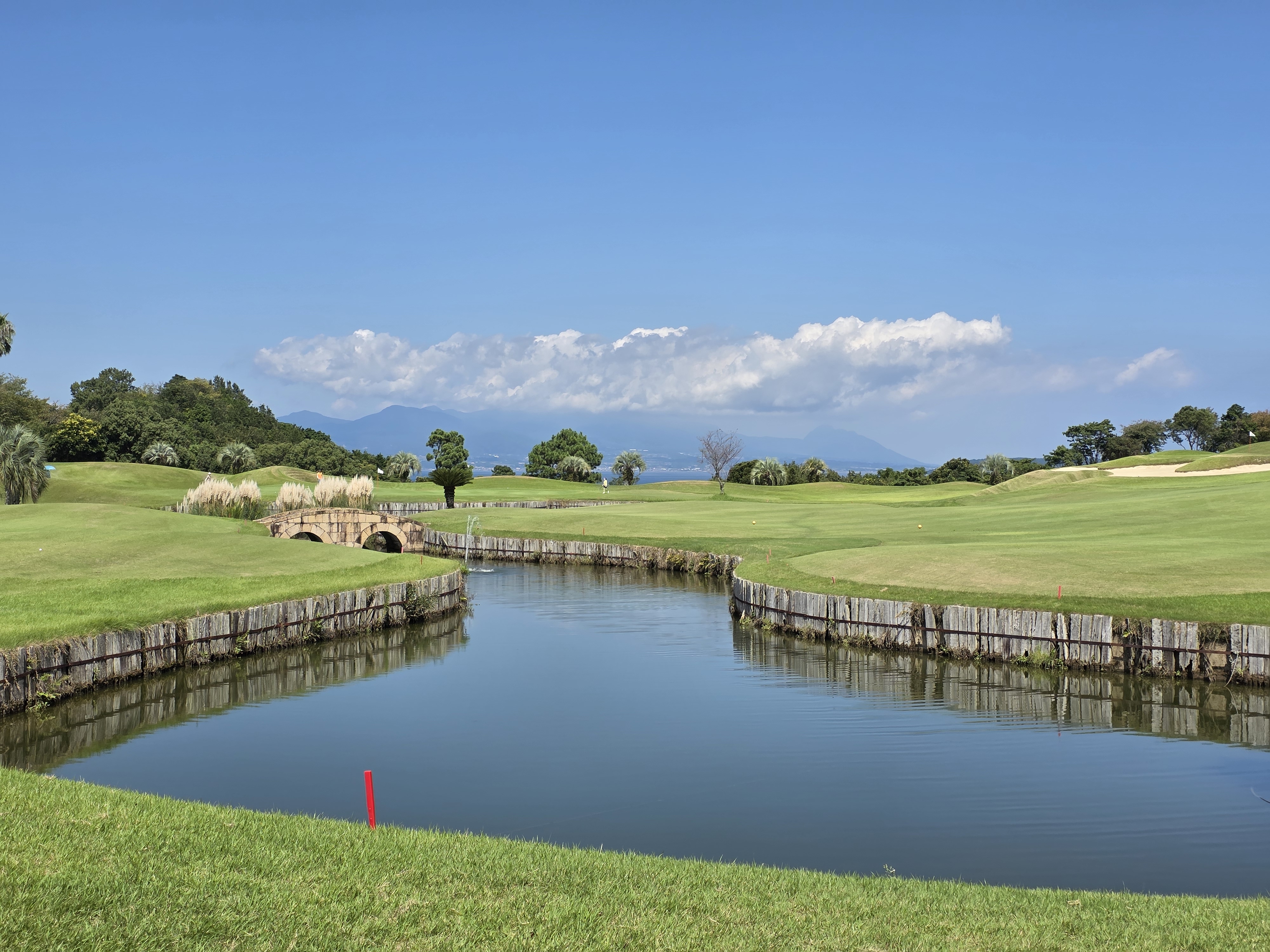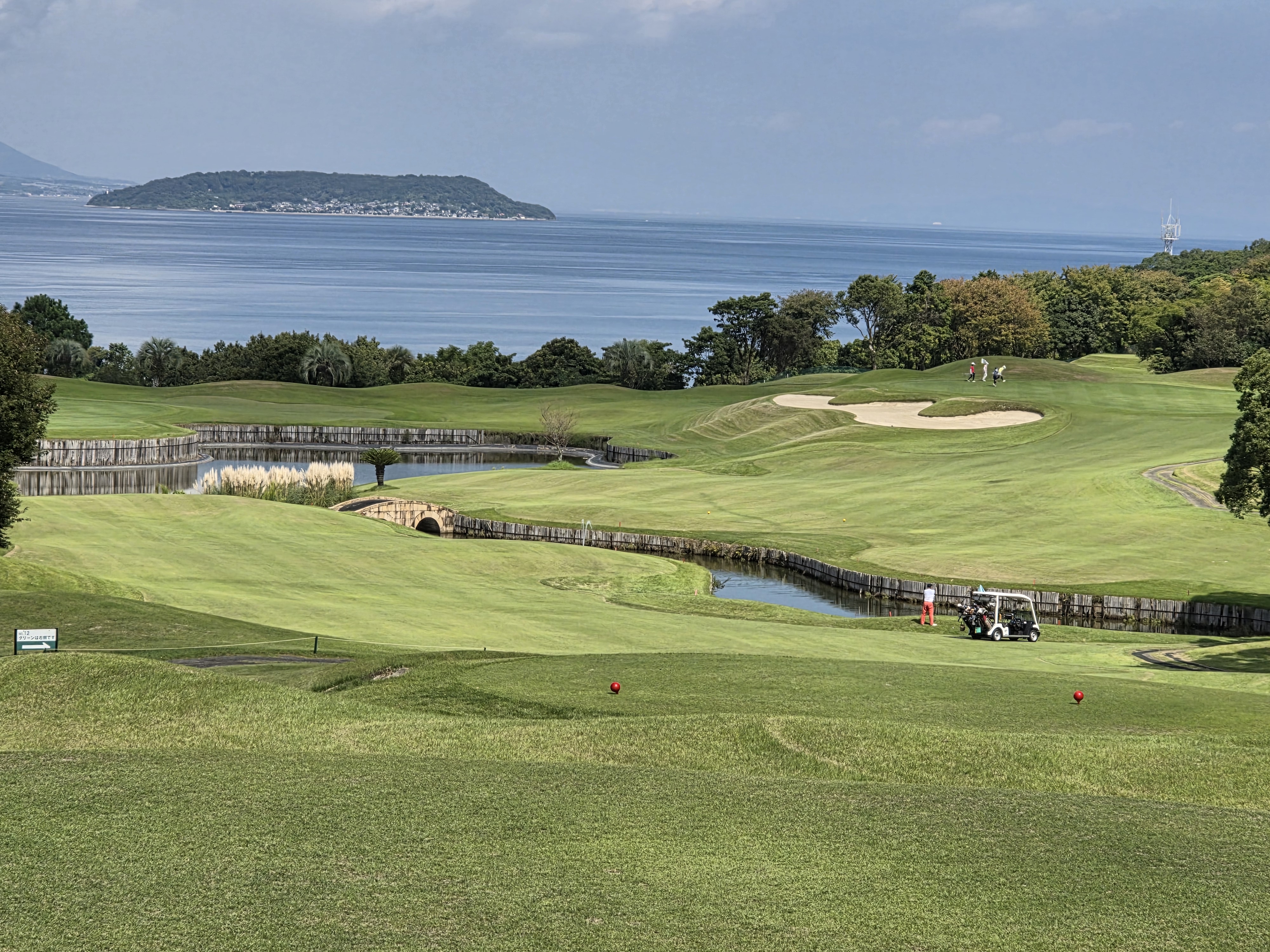 이 코스는 아리아케해를 마주한 언덕 위에 조성된 시사이드 골프장으로, 18홀 중 12홀에서 바다를 보면서 샷 하는 아름다운 코스입니다. 티 박스에 서는 순간 푸른 바다와 하늘이 맞닿은 풍경에 감탄하며 티샷하는 감동은 말로 표현하기 어려울 정도입니다.