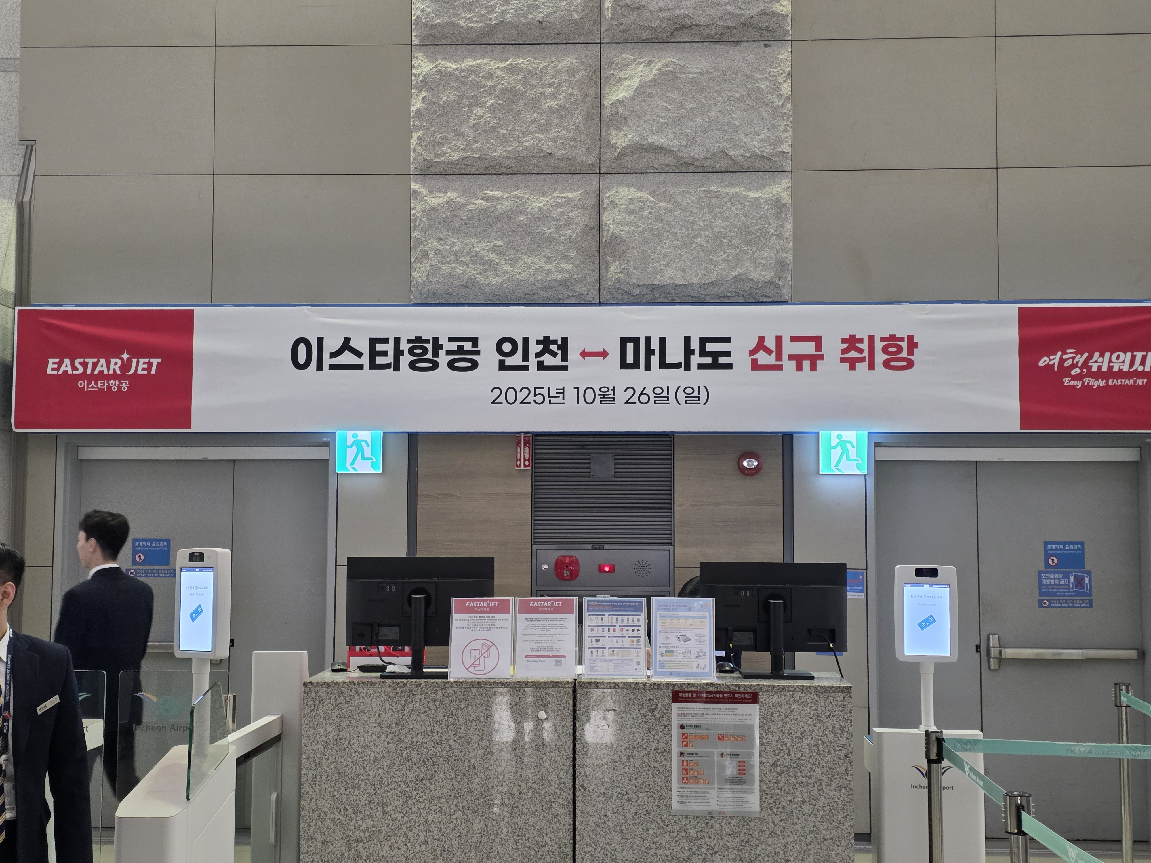 항공사 슬롯 문제로 인천발 마나도 직항편의 출도착 시간은 그리 편하지 않았다. 밤 8시 30분에 출발한 비행기는 현지 시간 새벽 1시 반쯤 도착했다. 첫 직항편이라 공항에는 환영 인파가 많이 기다리고 있었고, 모든 승객에게 모자와 우산, 커피가 담긴 기념품을 나눠주었다.