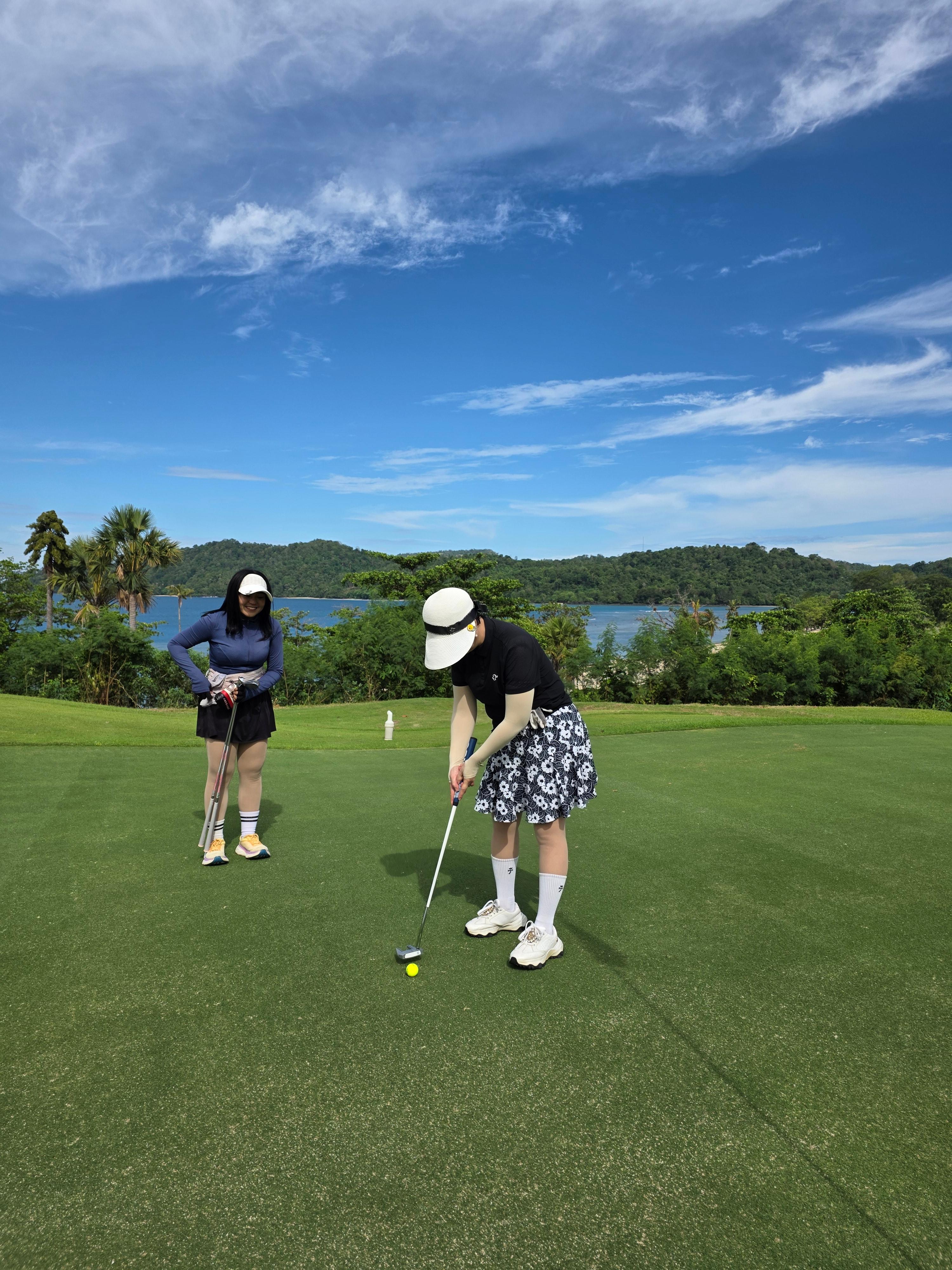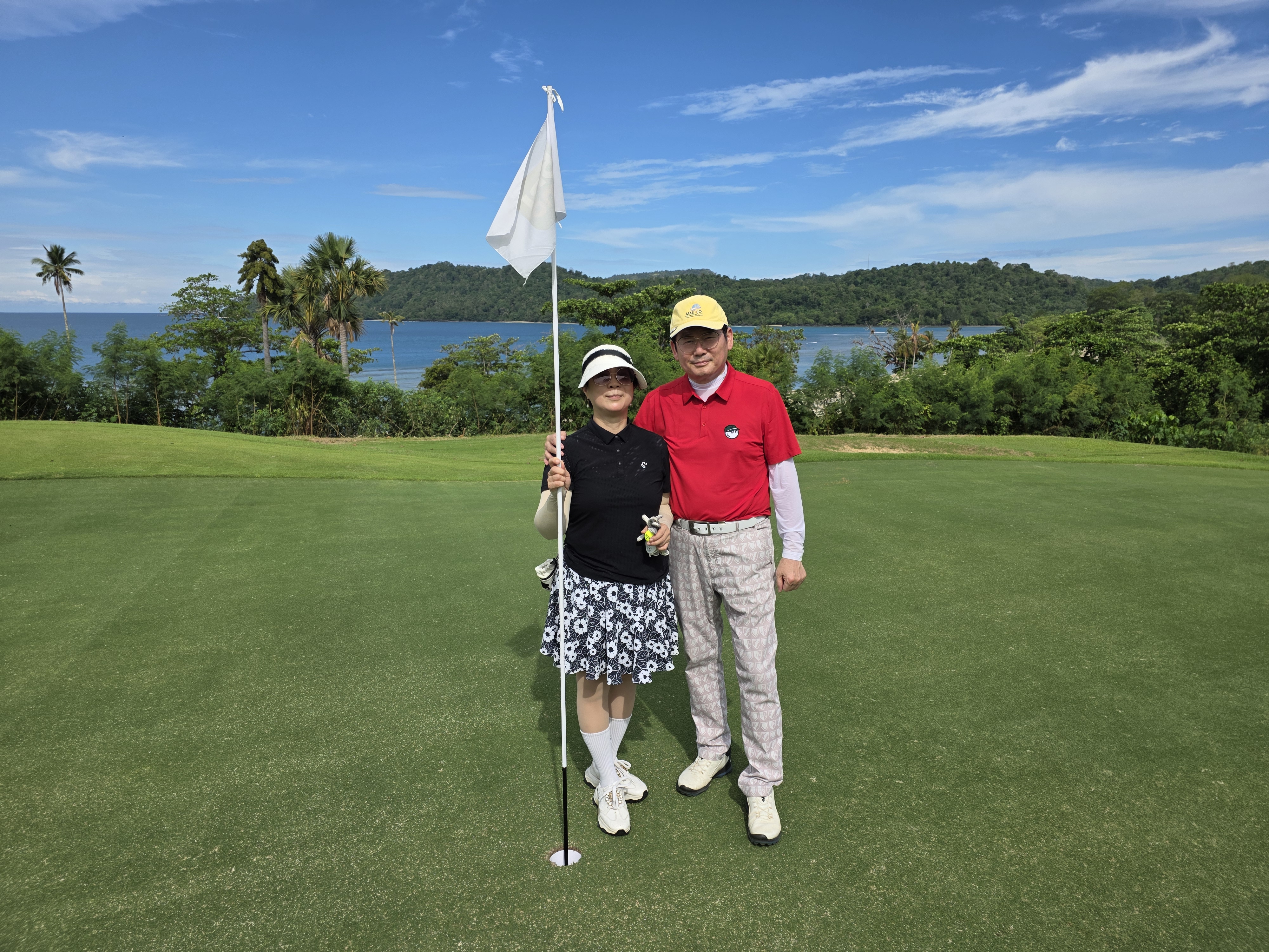 시그니처 홀은 14번 파4홀. 그린 위에서 내려다보는 바다는 그야말로 ‘푸른 향연’이다. 파란 잔디, 하늘빛, 에메랄드빛 바다가 만들어내는 색의 층위가 눈부시다. 쓰리퍼트도 즐겁게 느껴질 만큼 아름답다. 함께한 소중한 사람들이 있어 더 행복했다.