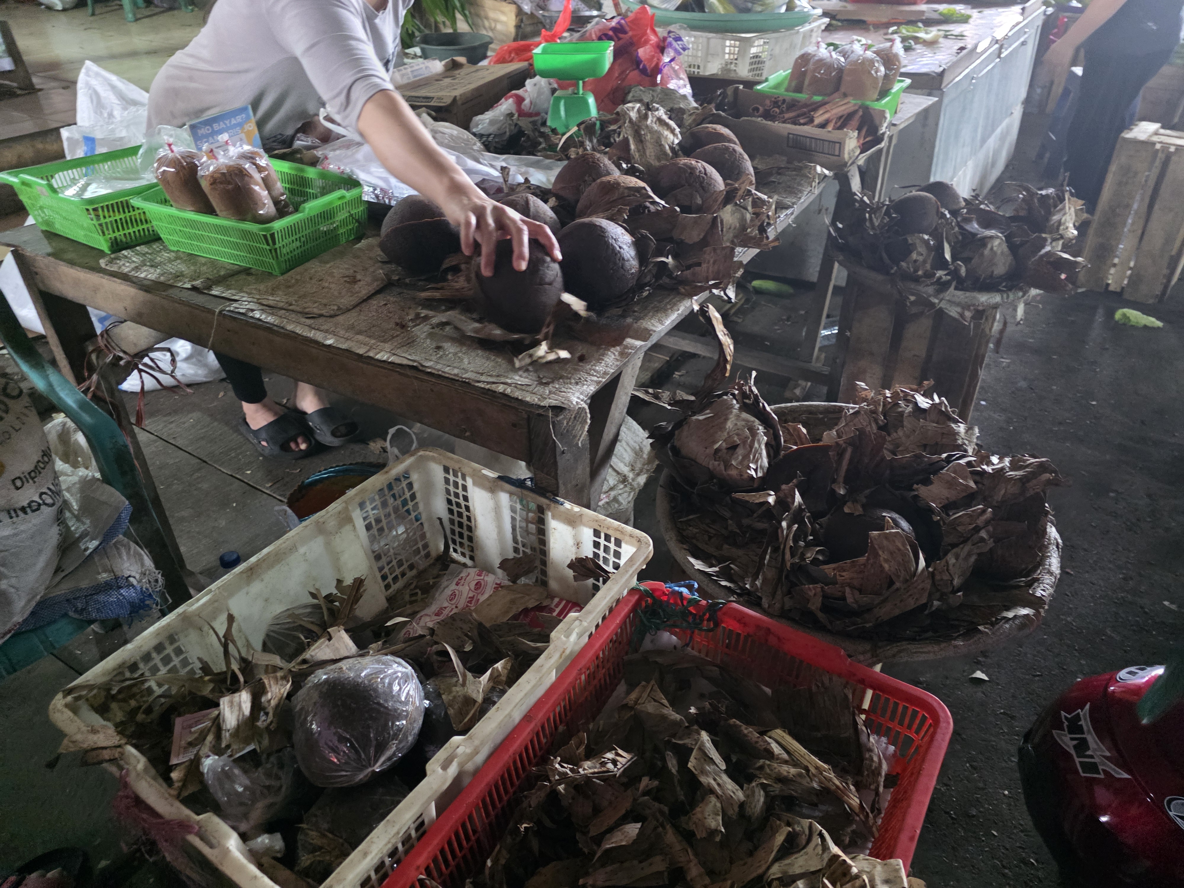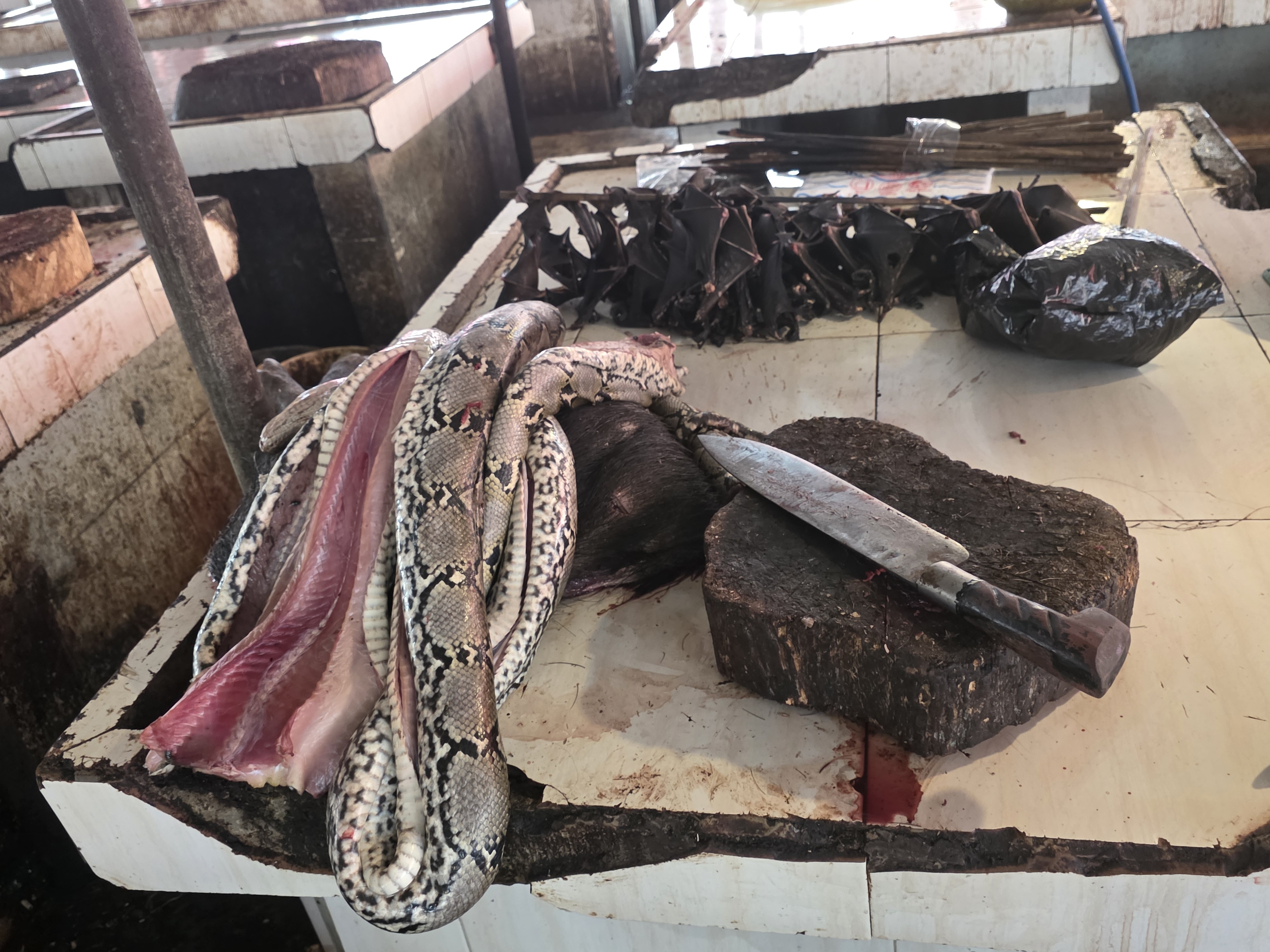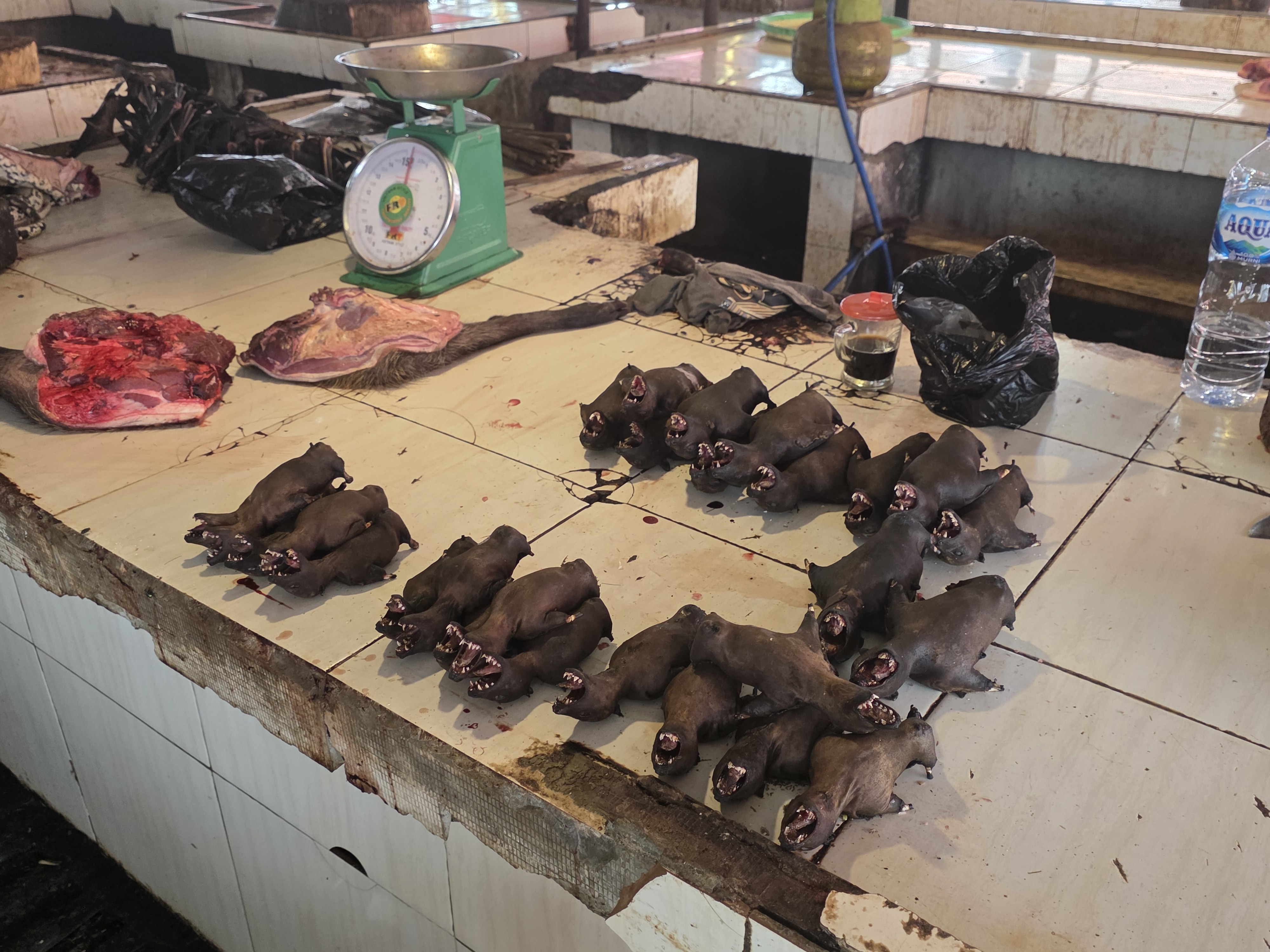 특히 눈길을 끈 것은 야생동물 고기를 도축해 판매하는 곳과 팜 트리에서 추출한 전통 갈색 설탕이었다. 마나도 사람들은 다랑어와 박쥐 고기를 즐겨 먹는다고 하며, 박쥐 외에도 원숭이 뒷다리, 심지어 아나콘다만 한 구렁이도 팔고 있었다.