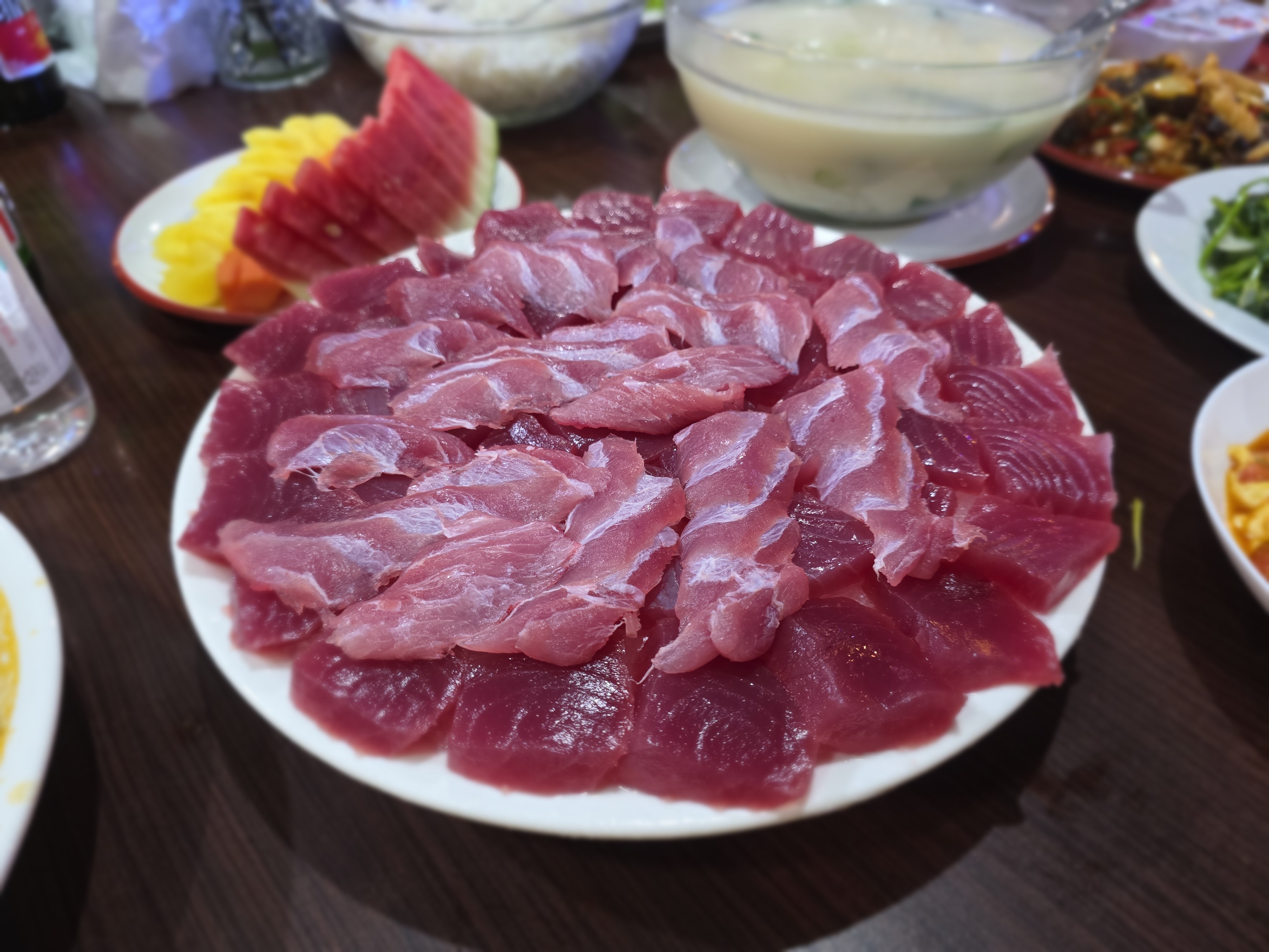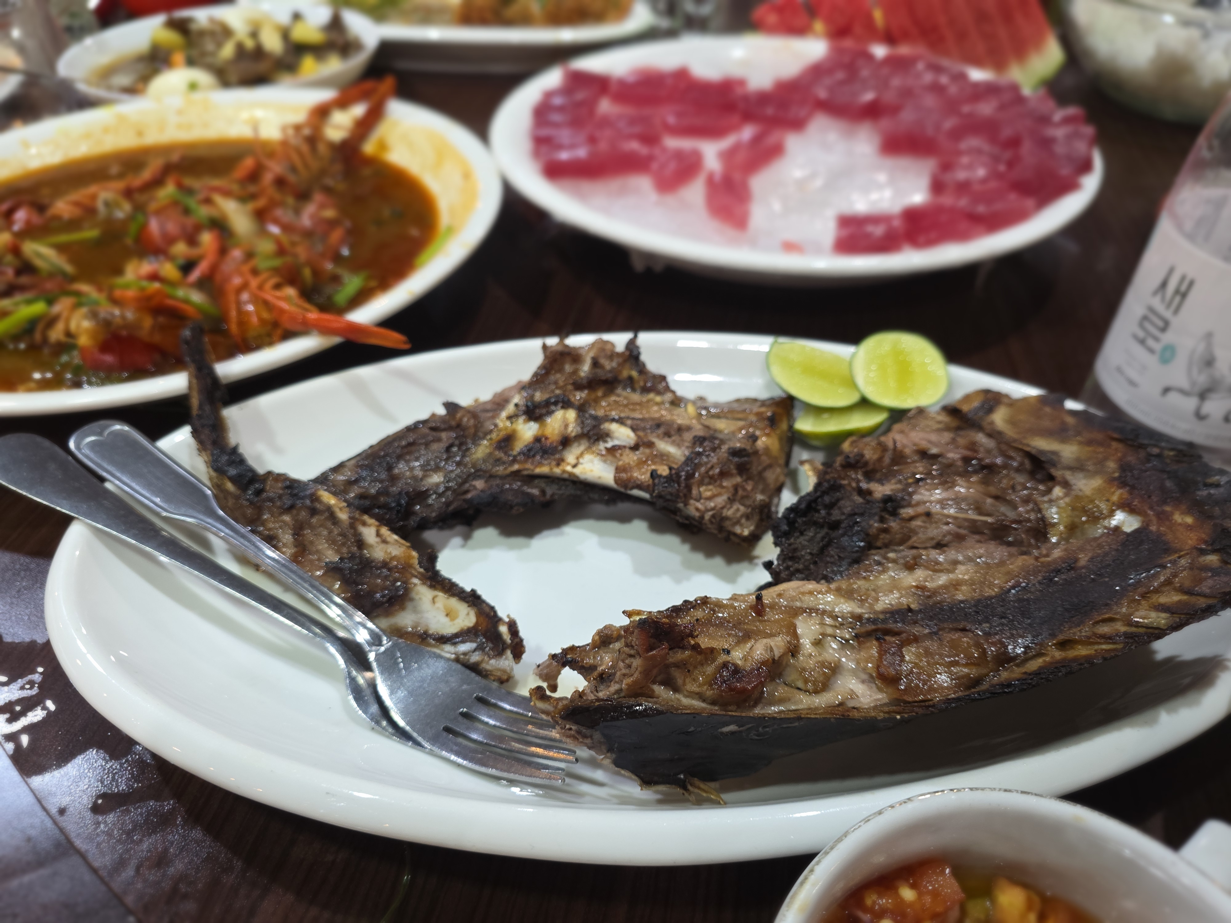 함께한 일행 중 한 분이 참치 한 마리를 '쏜' 덕분에 특별한 경험을 했다. 갓 잡아 온 싱싱한 참치를 맛보는 행운을 얻었다. 입에서 녹듯이 전해지는 참치회 맛과 스테이크, 그리고 고소한 참치 머릿고기 구이까지, 정말 입이 호강하는 순간이었다.