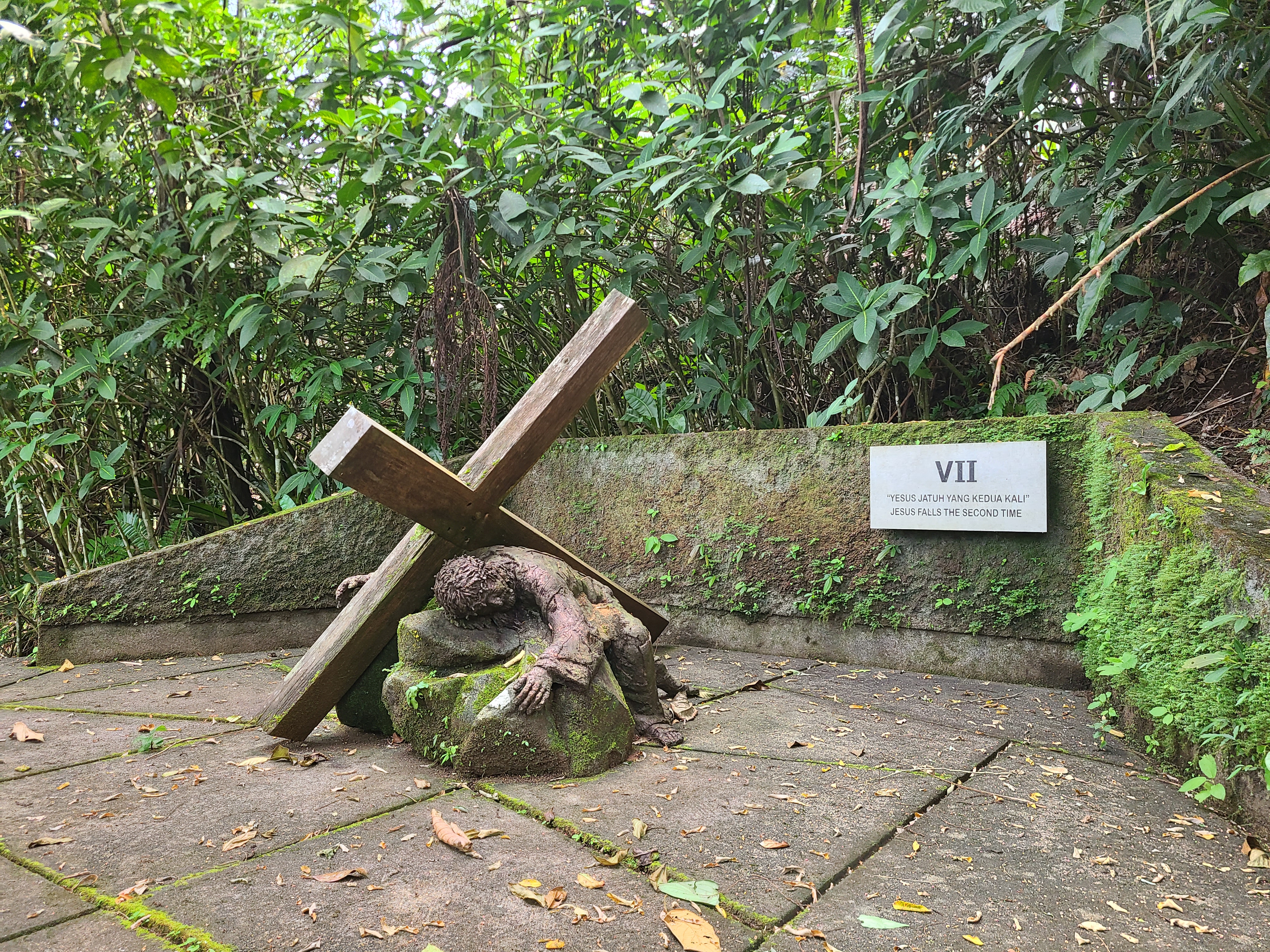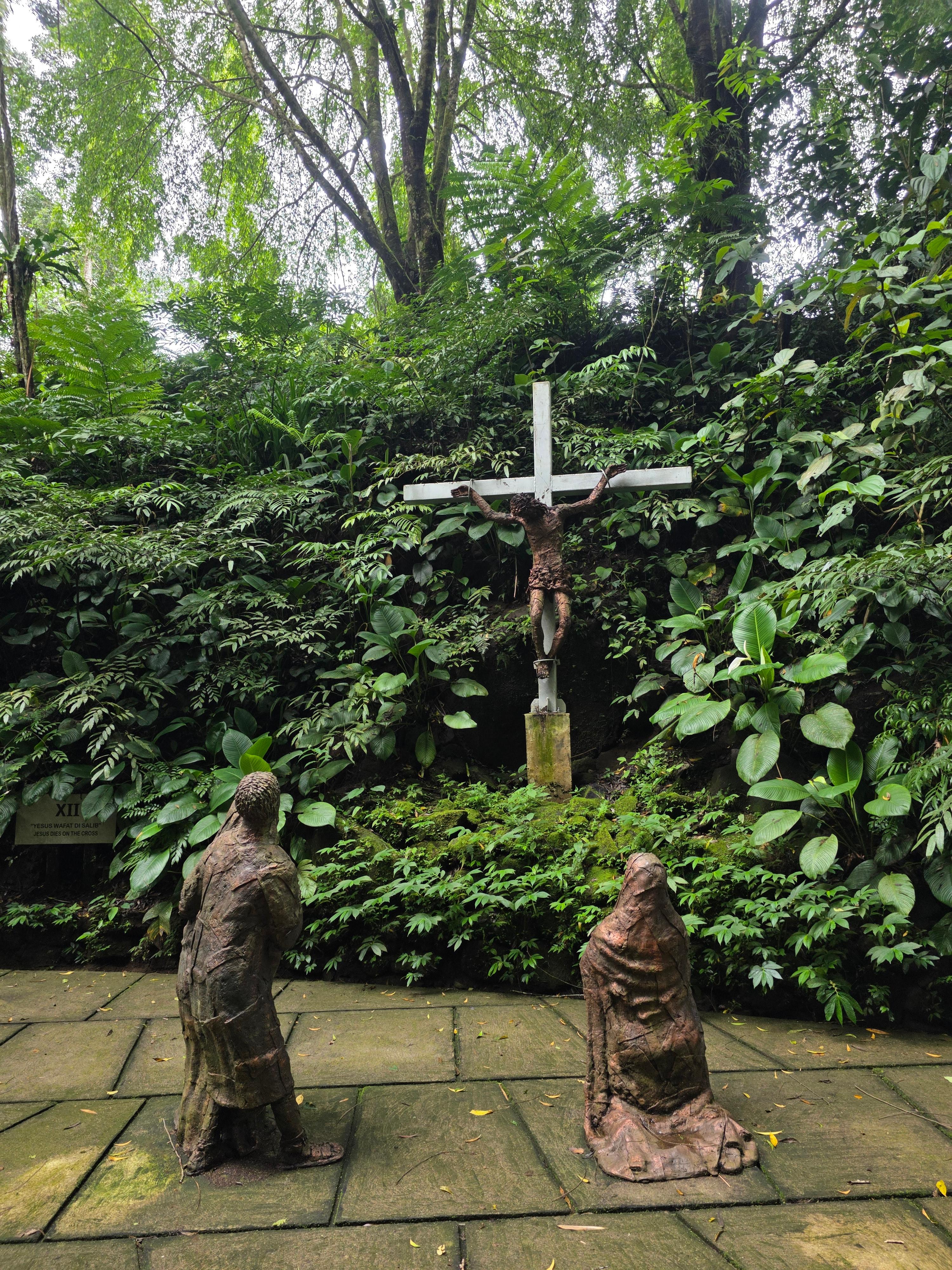 울창한 열대 우림 사이를 거닐며 조용히 산책하고 묵상할 수 있는 길. 아름드리나무 그늘과 열대 우림이 뿜어내는 피톤치드가 청량감과 시원함을 더해 주지만 예수 그리스토가 십자가에서 숨을 거두고 어머니 마리아 품에 안기는 모습은 가슴 아프고 눈물겹다.