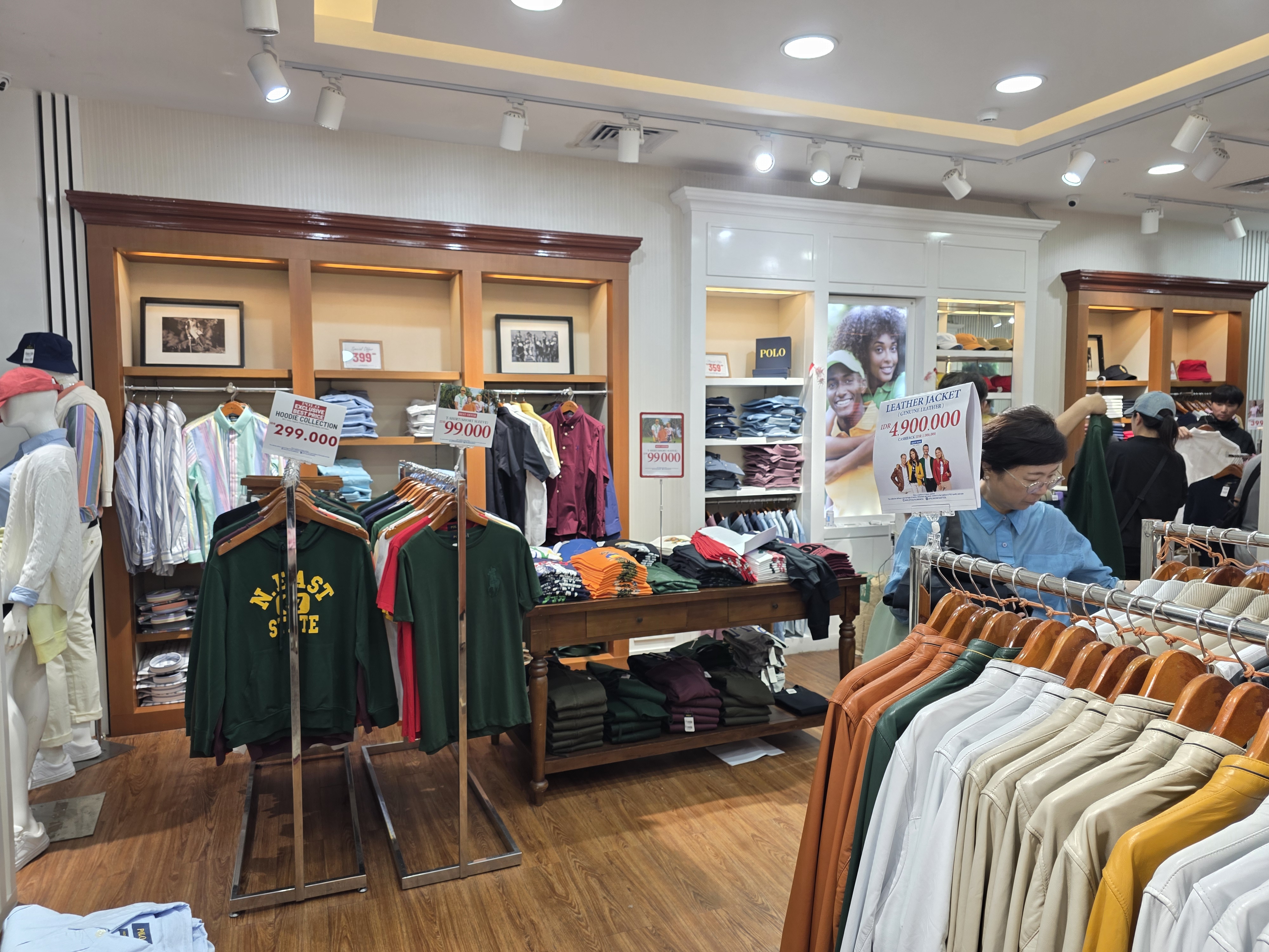 인도네시아 여행 기념품으로, 이 나라 대표 브랜드인 ‘Polo’ 브랜드 의류와 신발류도 저렴하게 구매할 수 있다. 공항 면세점 구역에 작은 폴로 전문 매장이 있는데, 규모는 작지만 할인 폭은 작지 않다.