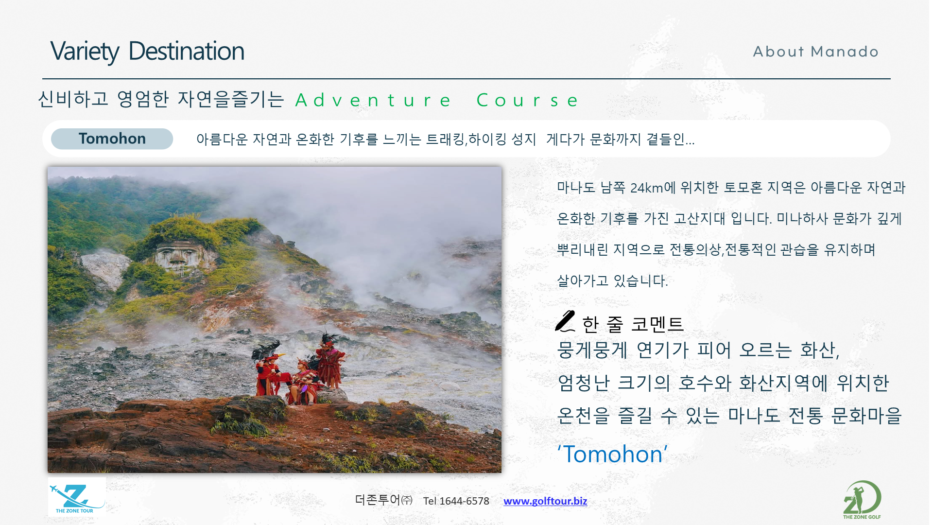 이번에 다녀온 마나도는 골프 여행지를 넘어 <축복과 평화>를 함께 선물하는 특별한 곳이었다. 이틀은 파라다이스 골프 리조트에서 멋진 라운들를 가지고, 이틀은 해양 액티비티(부나켄 등)와 활화산 지역의 영적 명소를 탐방하는 힐링의 시간을 가졌다. 여러가지 문화 체험과 최고의 미식까지 더해져 더욱 풍성했다.