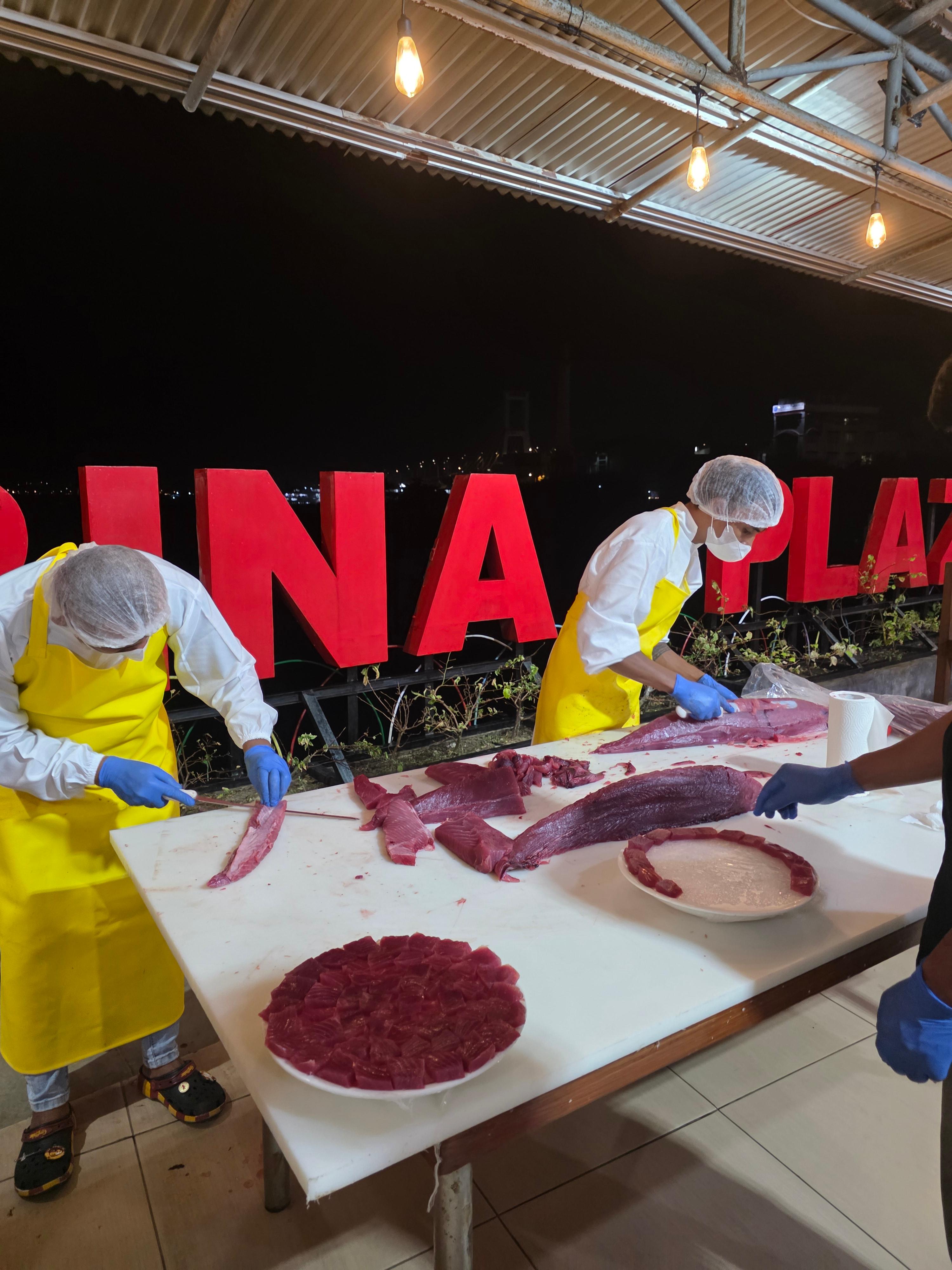 (참고) 이날 참치 해체 쇼를 관람하고 요리를 즐길 수 있었던 것은, 동행자 중 한명이 적지 않은 비용을 들여 참치 한 마리를 직접 구매해 준비한 덕분입니다. 일반 여행자에게 기본으로 제공되는 코스는 아니니, 오해가 없으시기 바랍니다.