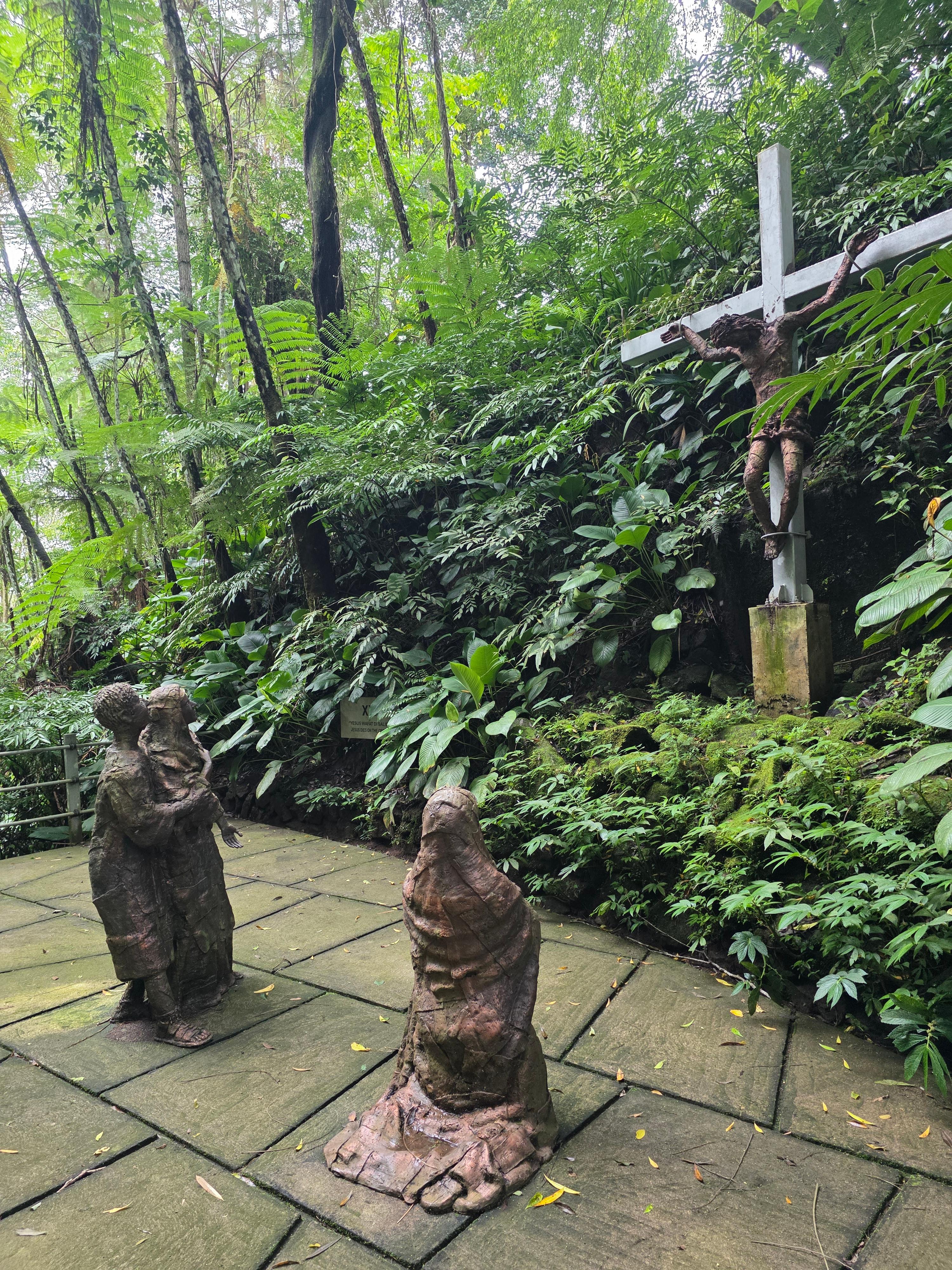" 마나도의 푸르른 자연 속에 조성된 그리스도가 십자가를 지고 걸었던 예루살렘의 '고난의 길'을 재현한 성스러운 산책로입니다. 이곳은 마나도의 비아 돌로로사(Via Dolorosa), 예수 십자가 고난의 길을 형상화한 아름다운 트레킹 코스 입니다. 정부나 관광 당국이 아닌, 한 개인의 깊은 신앙심으로 조성되었다는 점에서 더욱 뜻 깊습니다.