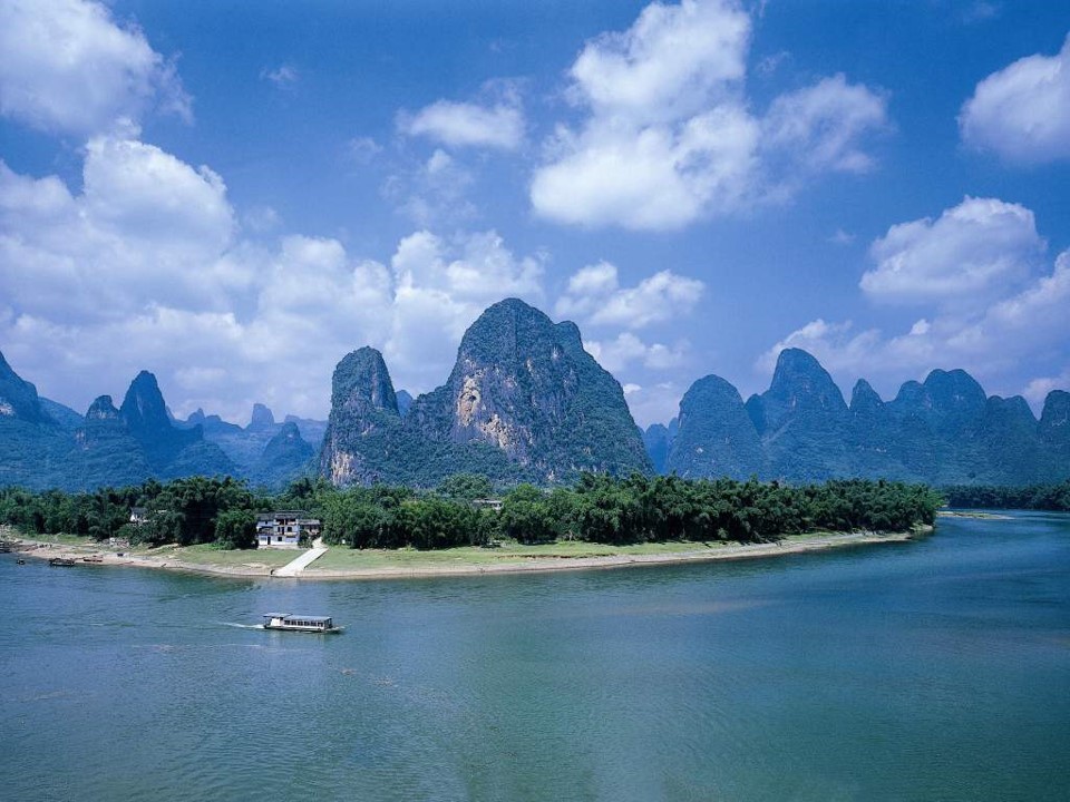 3만 6천 개의 봉우리가 병풍처럼 둘러서고, 리강의 푸른 물이 굽이친다.