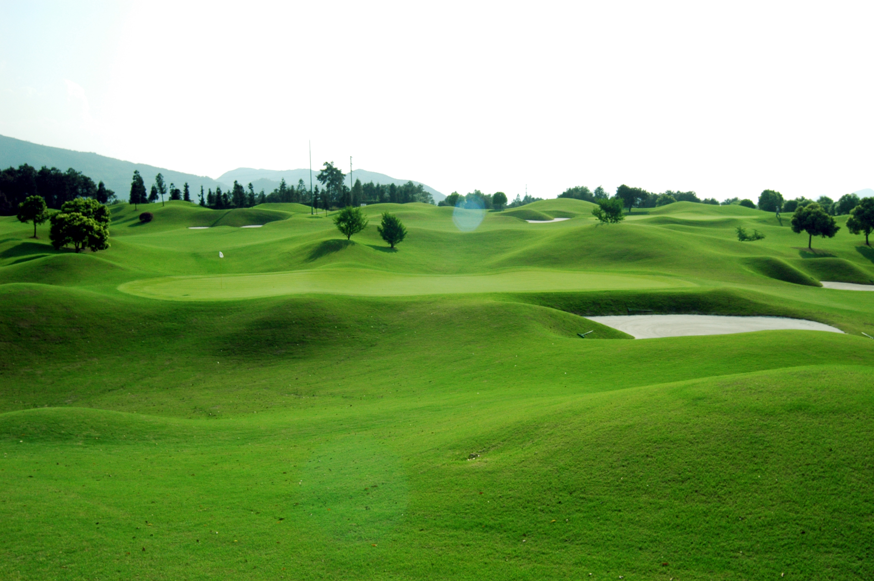 계림의 골프장- 메리랜드, 산수CC는 대부분 병풍처럼 둘러쳐진 카르스트 지형의 산봉우리들 사이에 자리 잡고 있다.