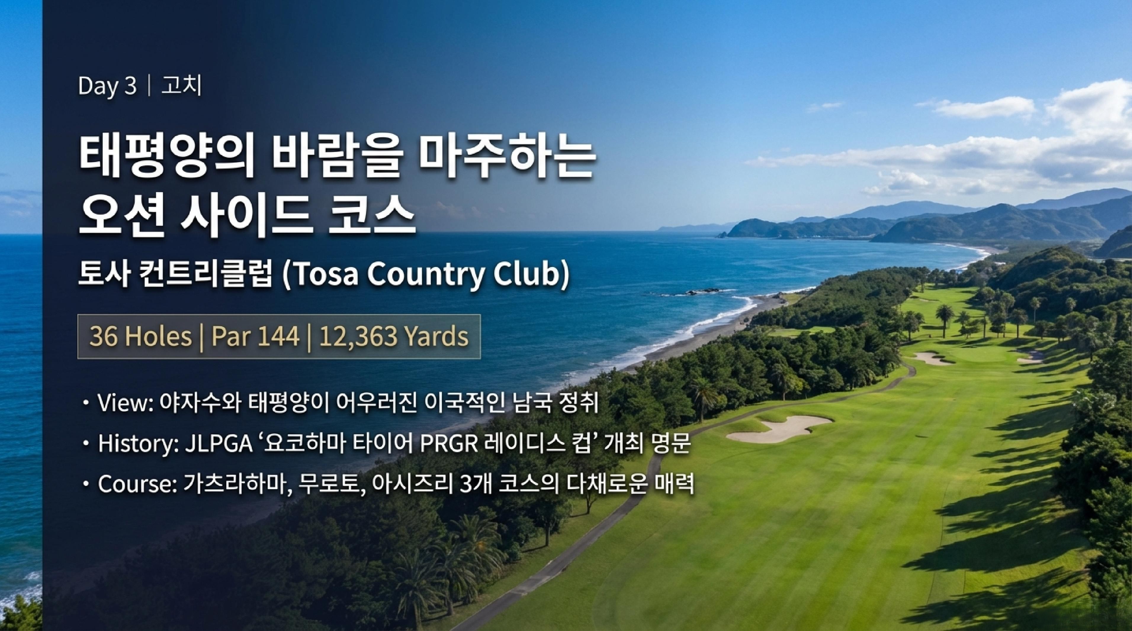 고치현 태평양 연안에 위치한 토사 컨트리클럽(Tosa Country Club)은 36홀 규모의 대형 리조트형 골프장으로, 시고쿠를 대표하는 명문 코스 중 하나입니다..