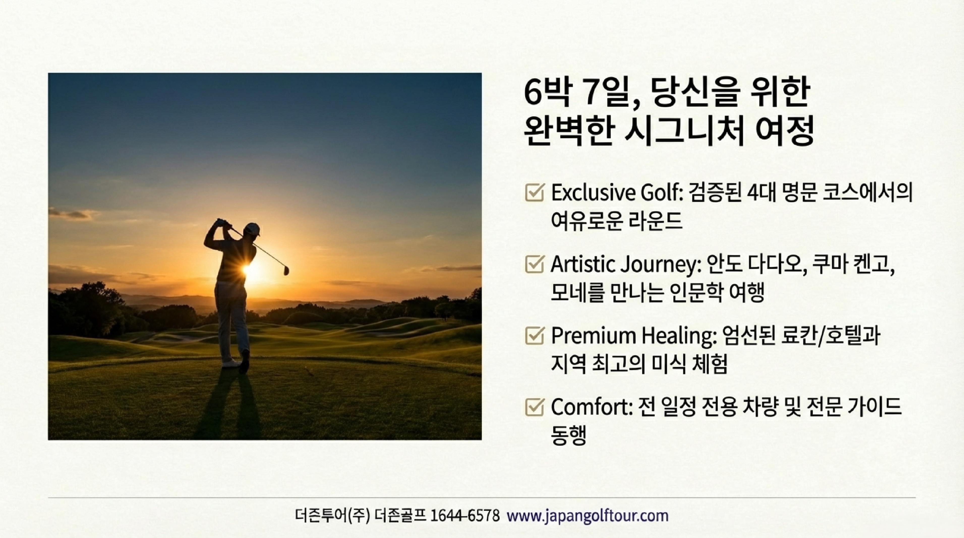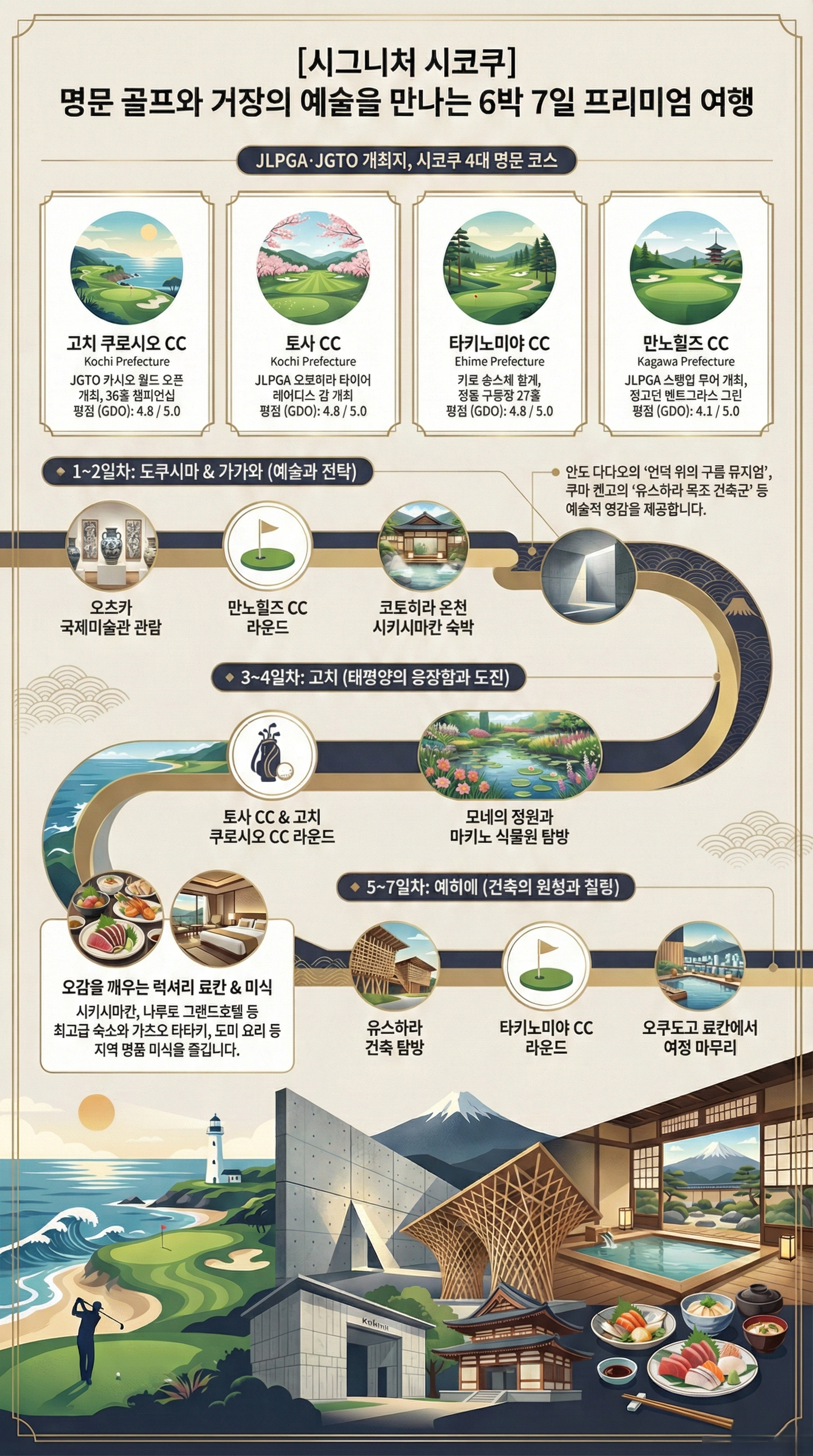 일본의 진심을 만나는 일주일, 시고쿠 프리미엄 골프 & 예술 힐링 투어